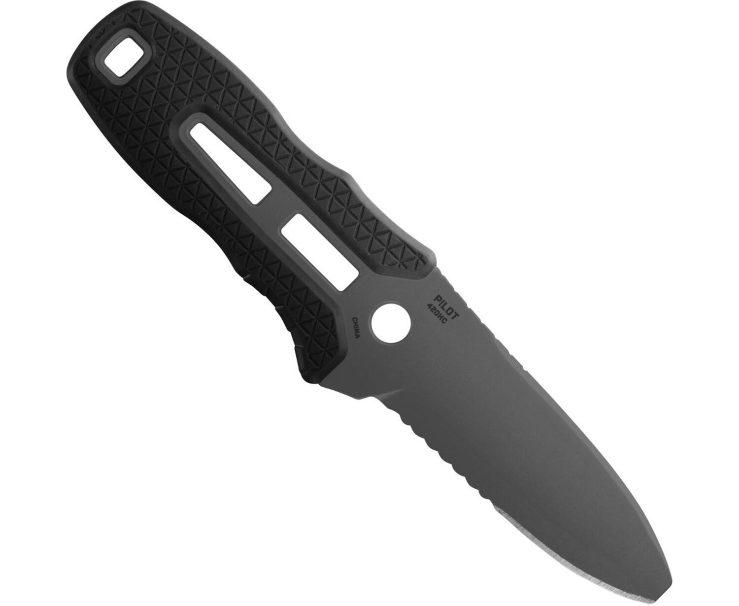 - Lanyard attachment point doubles as a valve wrench for an oxygen tank.