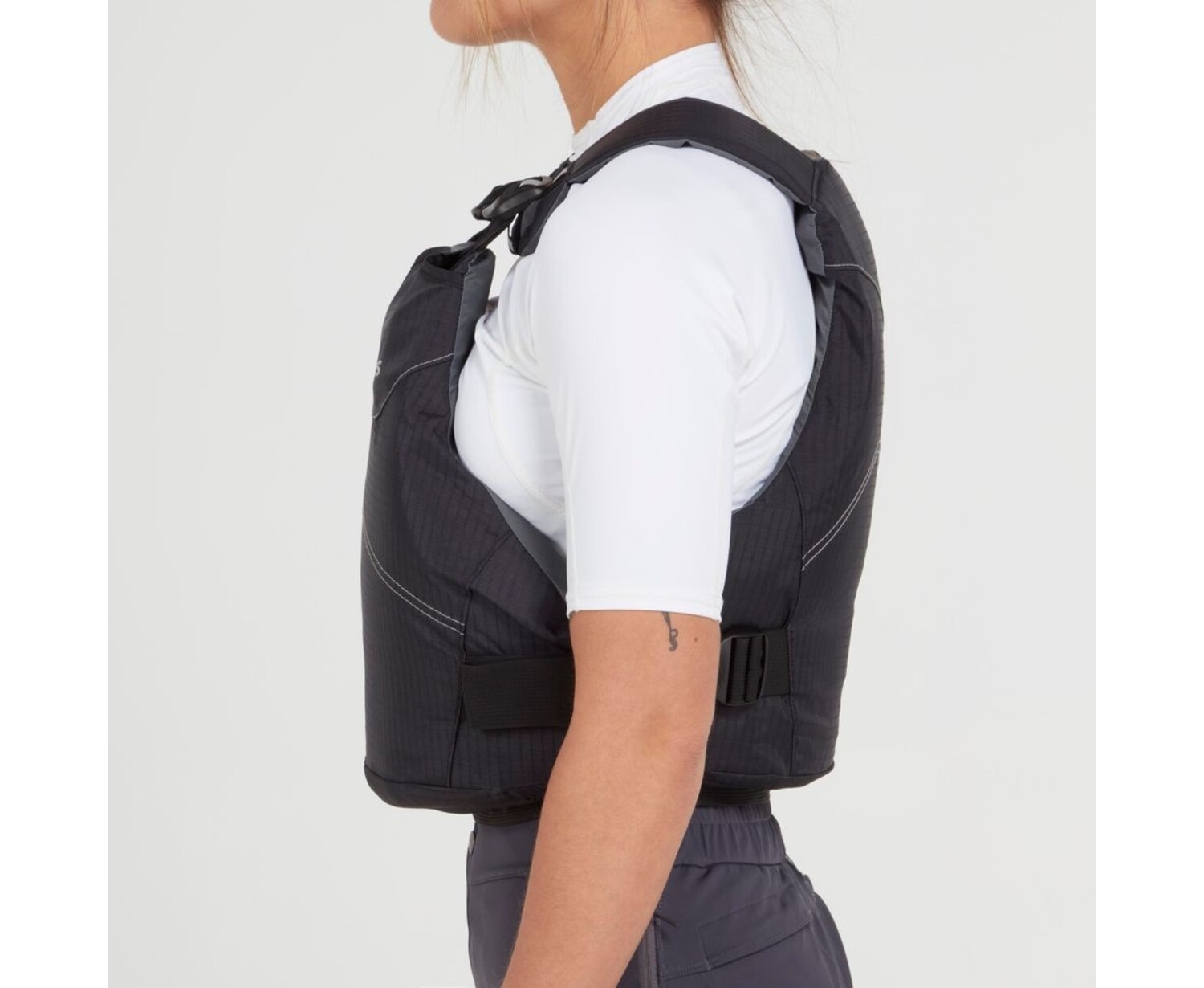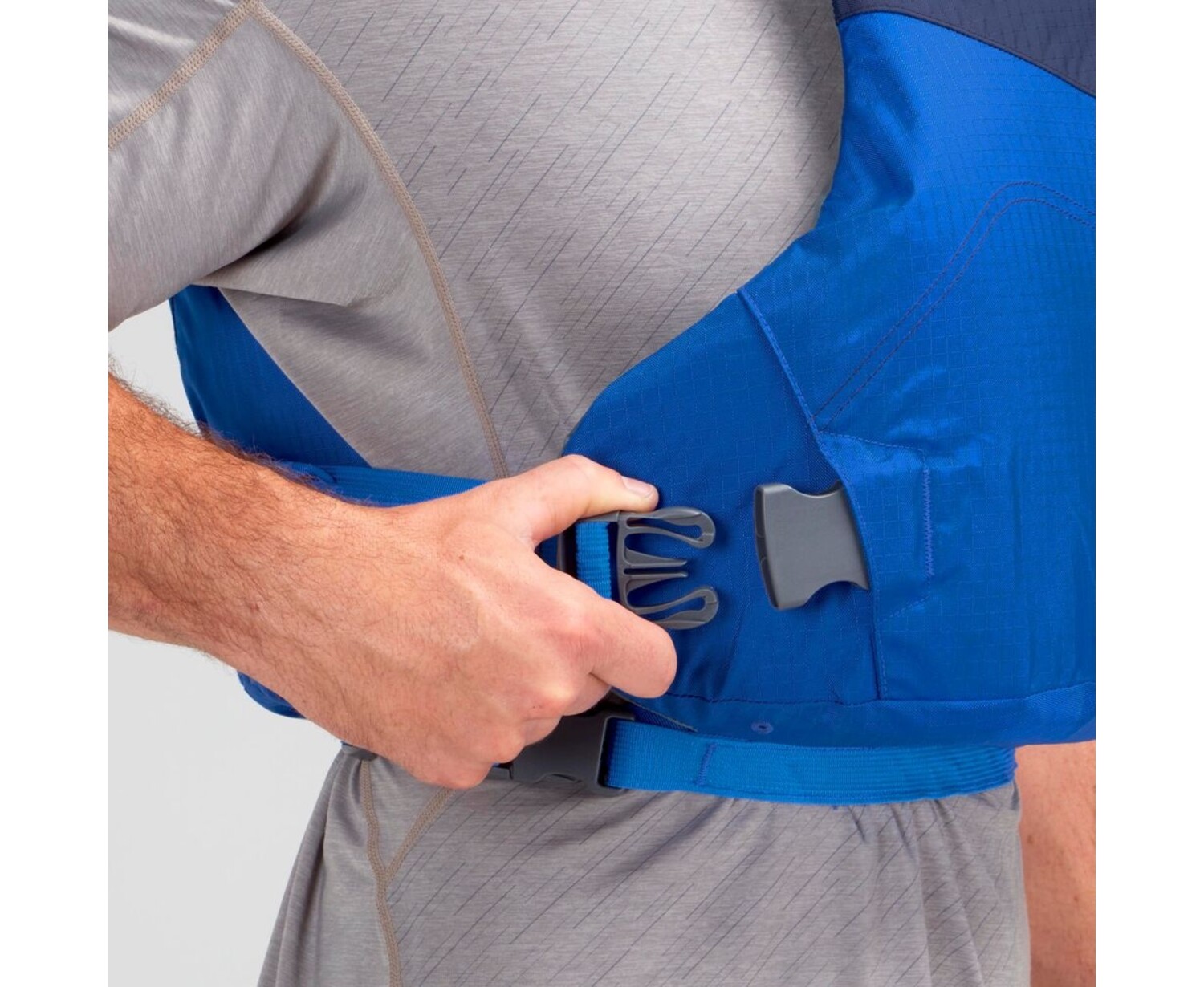 - Features reflective accents, shoulder strap and buckle garages, and a silicone-coated inner waistband to help hold the PFD in place.