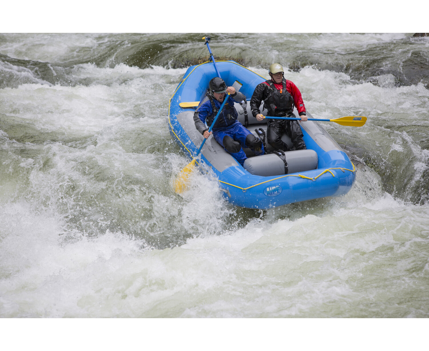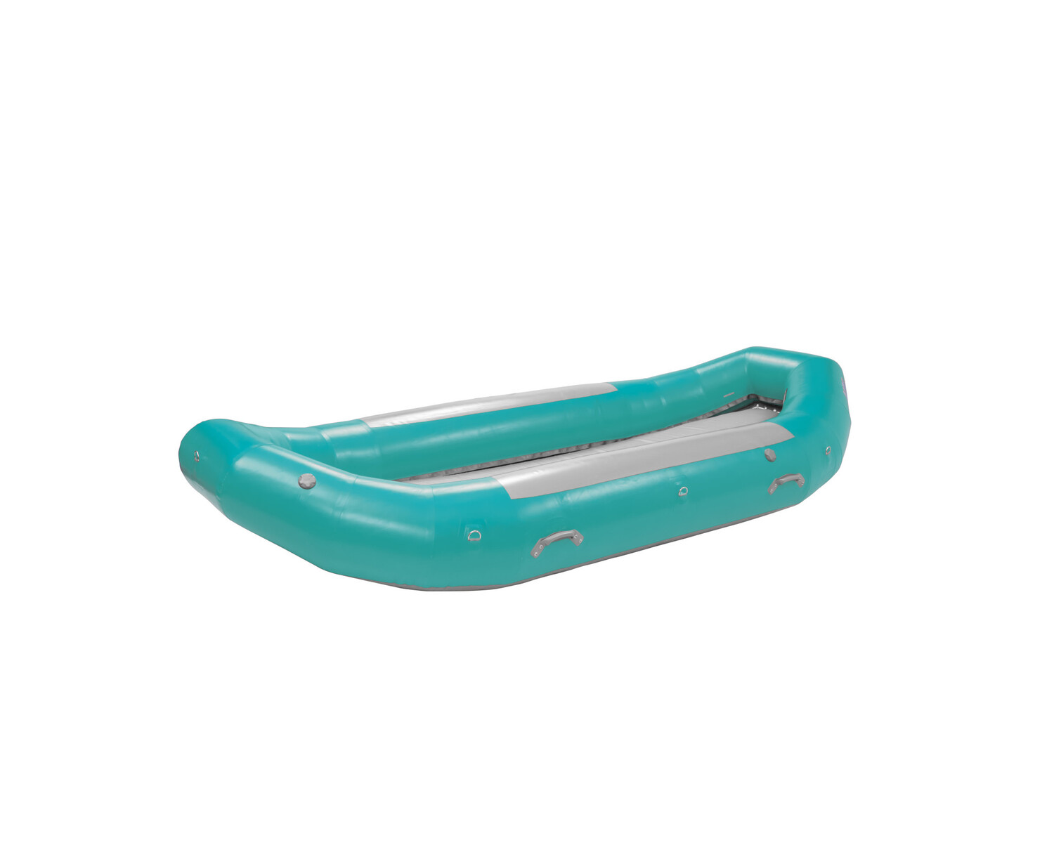 The 126DD is a rowdy little raft. The rocker and shape of the bow and stern crash into waves, and then climb up and over them like a 4-wheel drive. The 126DD is excellent for R2-R5 paddle teams. You can also outfit it with a frame if you’re into creeky, multi-day river trips. Its short waterline makes it to quick maneuver, and its width provides extra stability and elbow-room for paddlers.