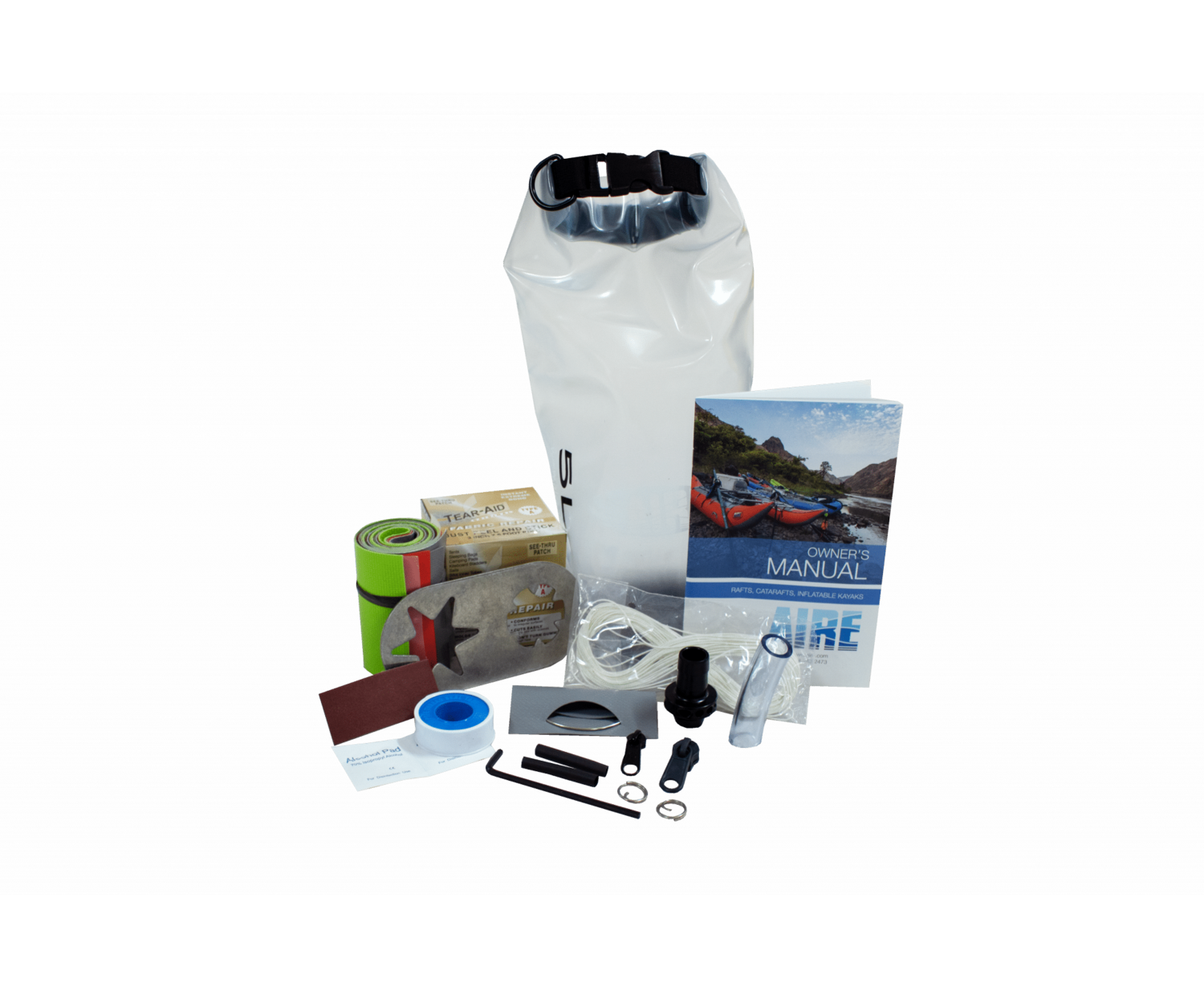 This repair kit gives you what you need to make field repairs on your AIRE inflatable raft, cataraft or IK. All you need for fixing punctures, tears, zipper problems and other repair issues when you're out with your AIRE boat.