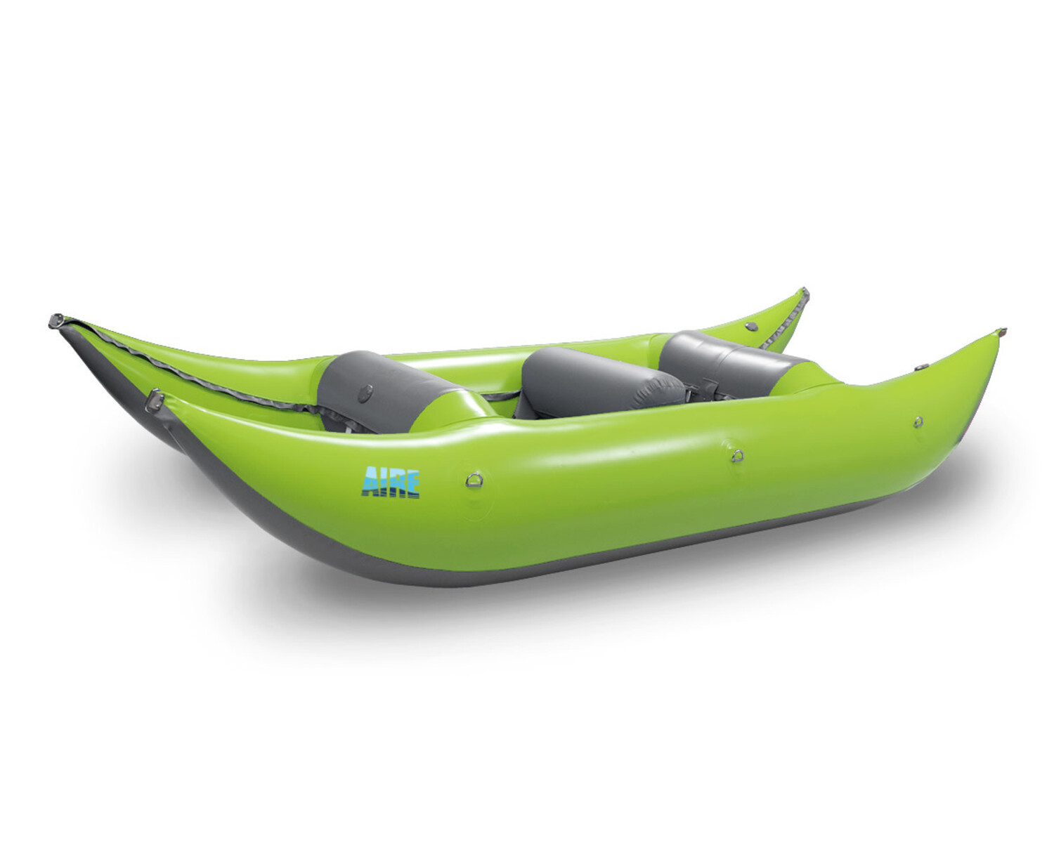 The Sabertooth can be rowed with a small frame or paddled with an R2 team. It’s fun, easy to paddle, tracks well, but can turn on a dime! The rockered tubes flow over waves, climb out of holes, and can help stick a landing over steep drops. The floor is durable Superman mesh for instant draining and won’t scoop in water. A sleeve of foam zipped into a pocket on the floor provides knee protection for those who prefer to paddle with one knee down and the other over the thwart. The floor has two foot cups in the bow to help keep paddlers locked into place. D-ring handles installed in the bow and stern make the Sabertooth easy for two people to carry. The Sabertooth now comes standard with one thwart that adjusts in the cockpit for the best fit. Built-in cross tubes and the AIREcell system add rigidity so that the boat won’t bend or “taco” in big water. The Sabertooth is a whitewater animal! It turns your local river into a playground, eats up technical tributaries, and is a blast in high-volume water.