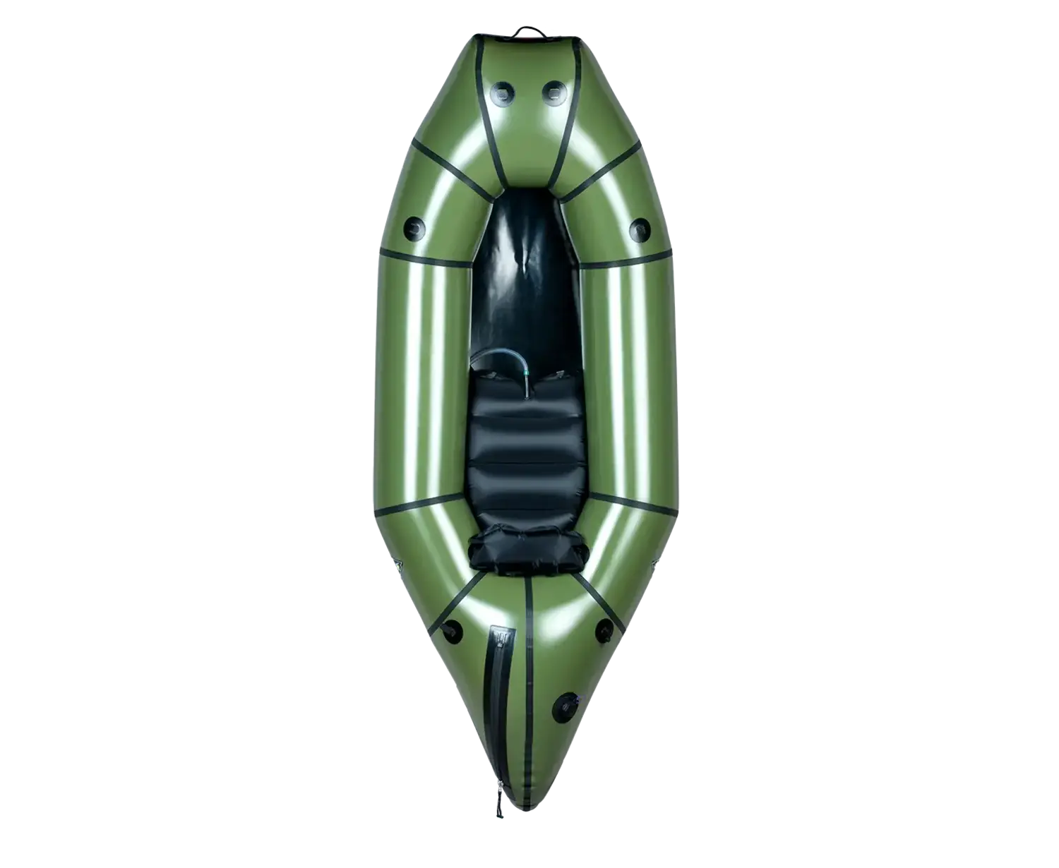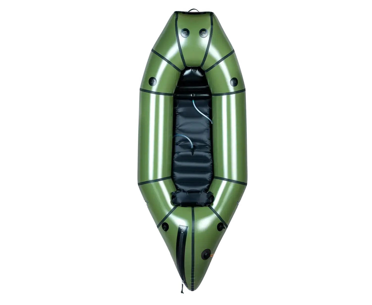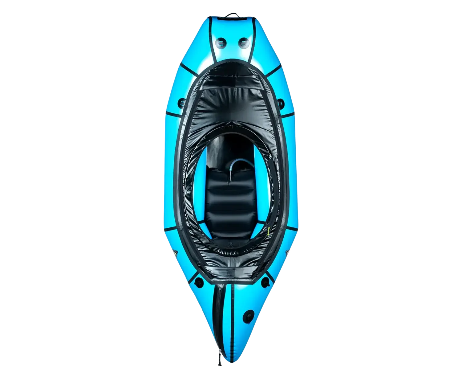 The Caribou Self Bailer with cargo fly zipper is perfect for warmer conditions, quick entry and exit, and anyone that prefers a self bailing setup. The self-bailing floor tends to stabilize the packraft which helps boaters navigate through tricky spots. No dumping water is required.