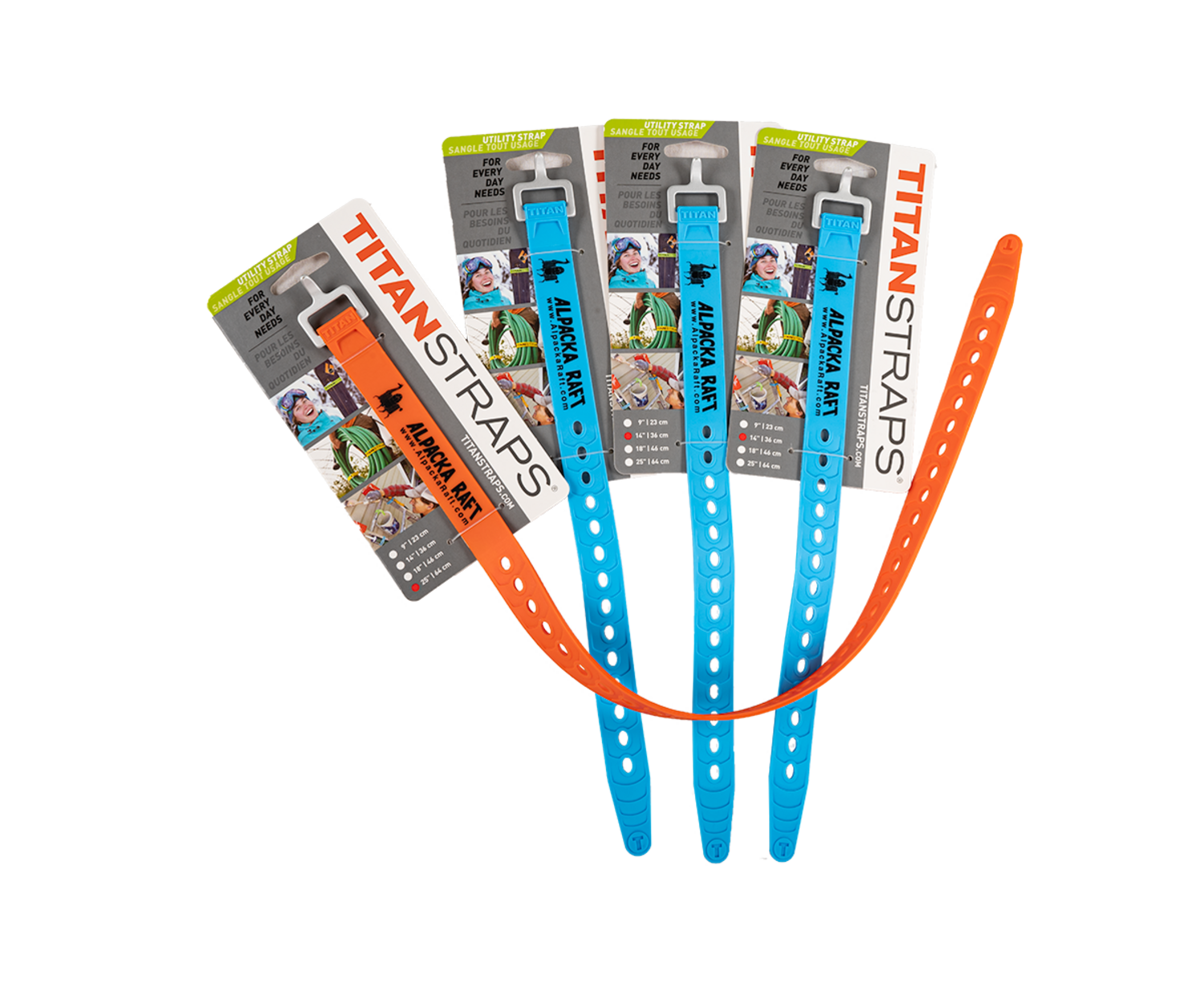 CloseHeavy duty TitanStraps are perfect for strapping a bike or other gear to the front of your packraft. The kit includes three 14-inch and one 25-inch TitanStraps, which are custom selected for attaching a bike to the front of the Caribou. They work great on all our boats with bow tie downs though! We recommend placing the bike on the bow with the fork on the right and facing towards the stern, and the front wheel removed (rear wheel removal is optional). Use the 25-inch strap to secure the chainstays and the rear wheel, and the three 14-inch straps for the other attachment points. The front wheel can be secured with a webbing or similar strap. The 25-inch strap is also great for securing your rolled up packraft when you hit the trail.