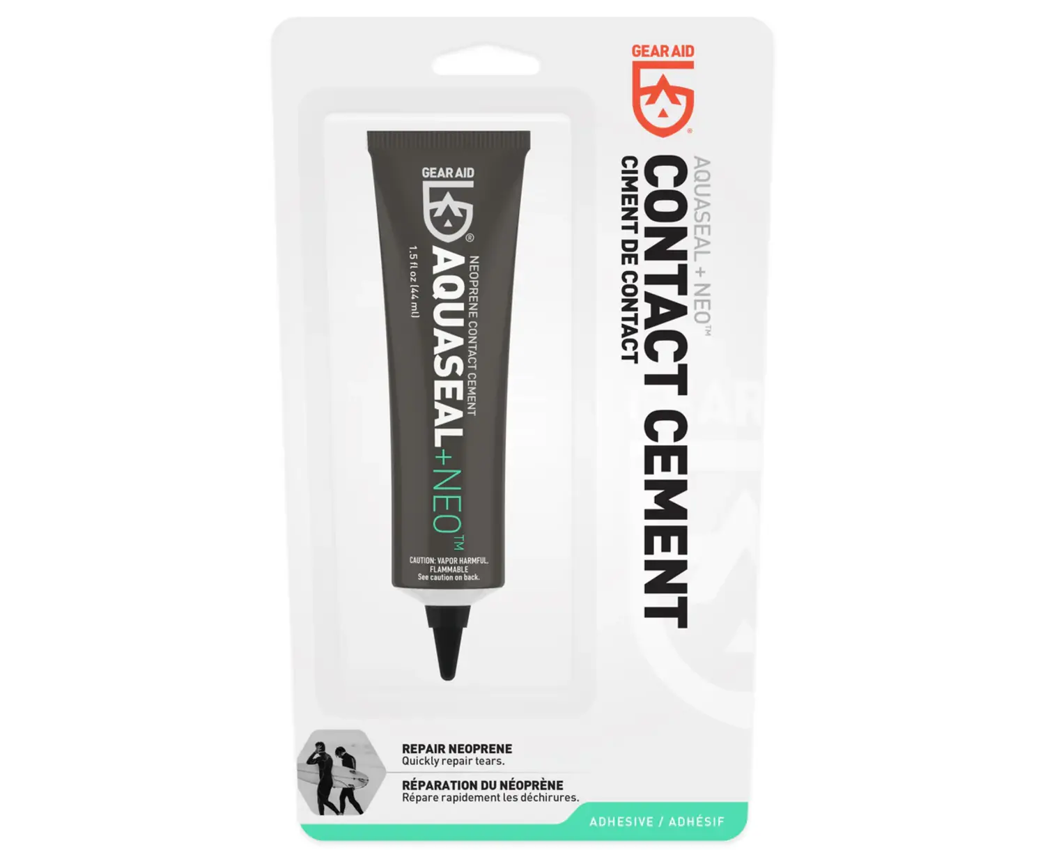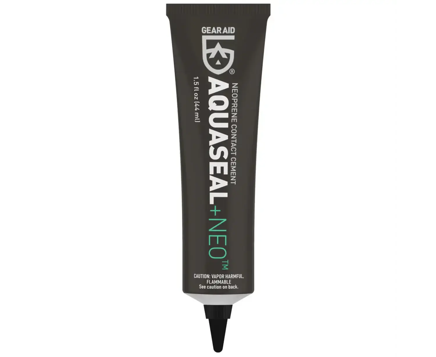 Wetsuit repair is simple and quick with Aquaseal NEO. Previously known as Seal Cement, this black contact cement is formulated to permanently bond with neoprene and other coated materials. With this flexible liquid adhesive, repairing neoprene gear can be done within half an hour. Apply to waterproof waders, gloves, booties, and spray skirts by the water. Or re-seal a leaky gasket at home. When rips and tears happen, use this contact cement to repair stretchy, high-performance fabrics and protect it from abrasions. Before venturing out to that favorite fishing hole or dive spot, bring Aquaseal NEO along for unexpected repairs and save that expensive gear.