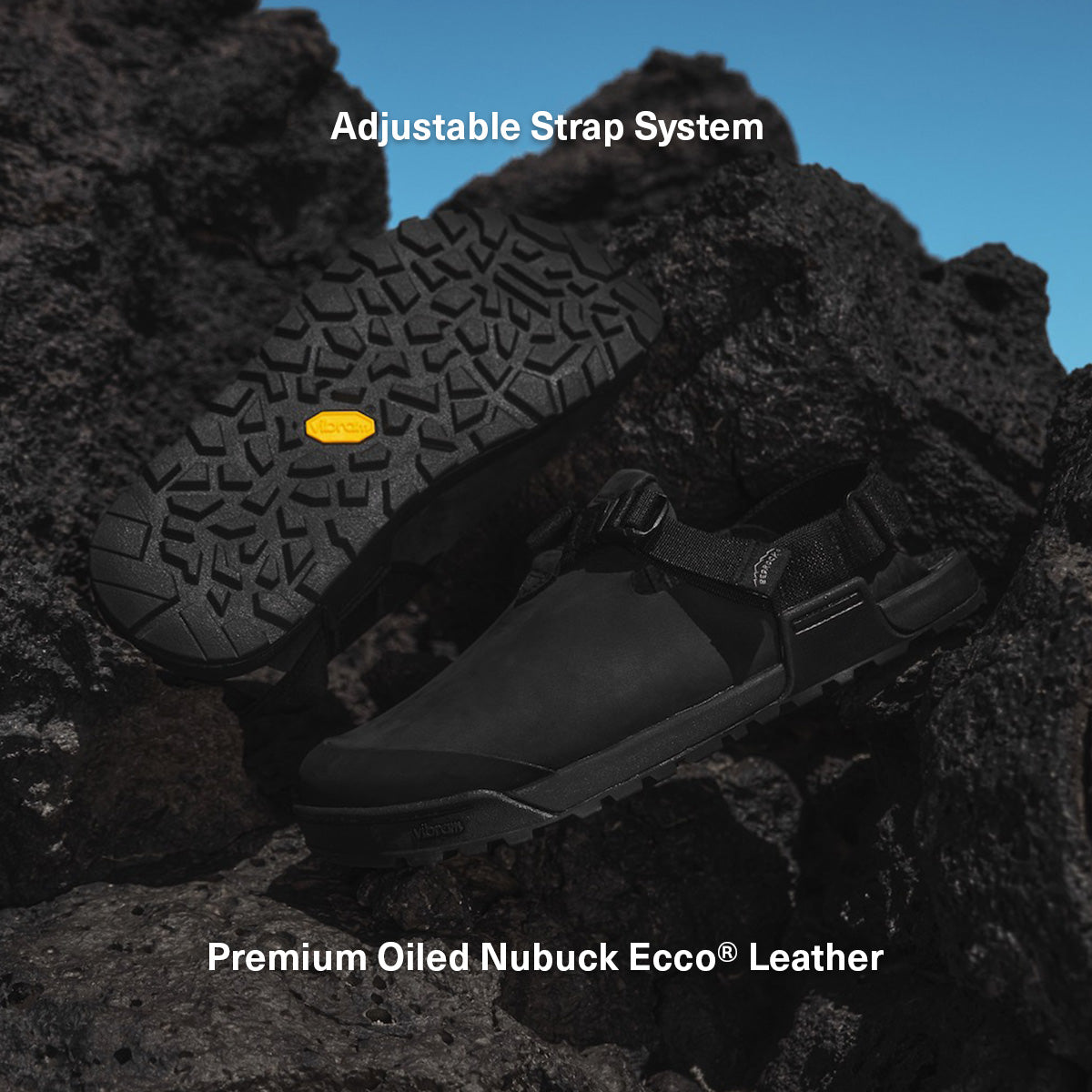Close*New Obsidian Dark Gray Color-Way* Our Nubuck Mountain Clog in Obsidian Dark Gray is an all new way to free your feet. The premium one-piece oiled Ecco® Nubuck leather upper keeps things classy on trail and around town, while our adjustable 3-point strap system and extra sticky Vibram® Megagrip outsole lets you go hard in the great outdoors.