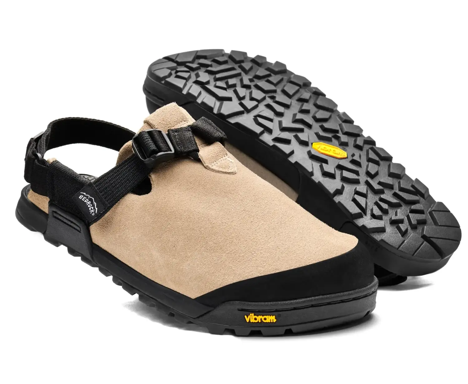 Close*New Birch Bark Color-Way* Meet the Bedrock Mountain Clog - featuring a durable leather suede upper in Birch Bark. Built from the lugs up, we’ve stacked a cushy midsole atop our super grippy Vibram® Megagrip outsole for that perfect comfy-rugged combo — while maintaining a zero drop profile for natural movement and the widely adjustable strap system you love on our sandals.