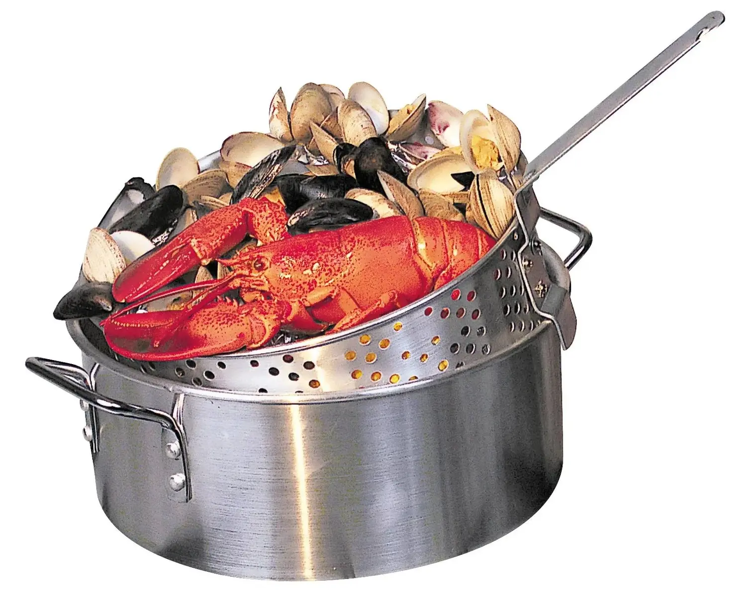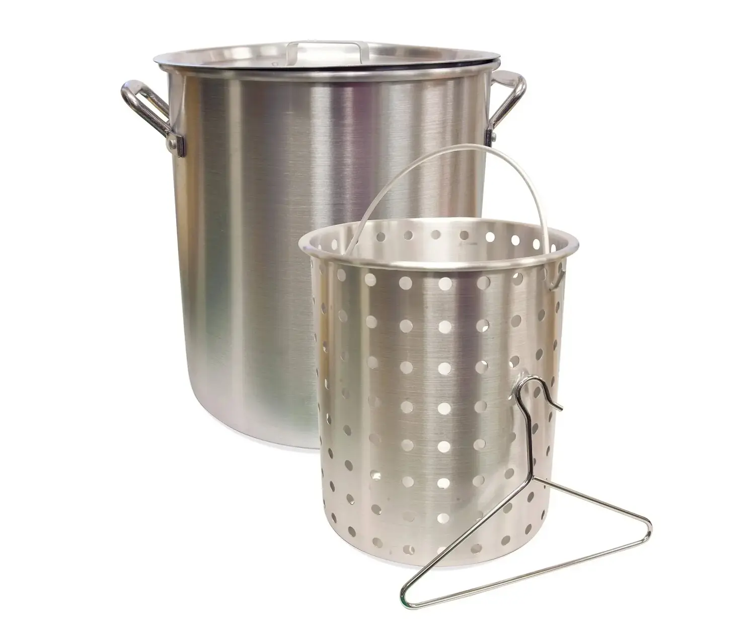 ClosePerfect for boiling, these large 10.5 - 42 quart aluminum pot and basket will get the job done - no matter the size. An aluminum lid, basket, and removal hook are included for your convenience.