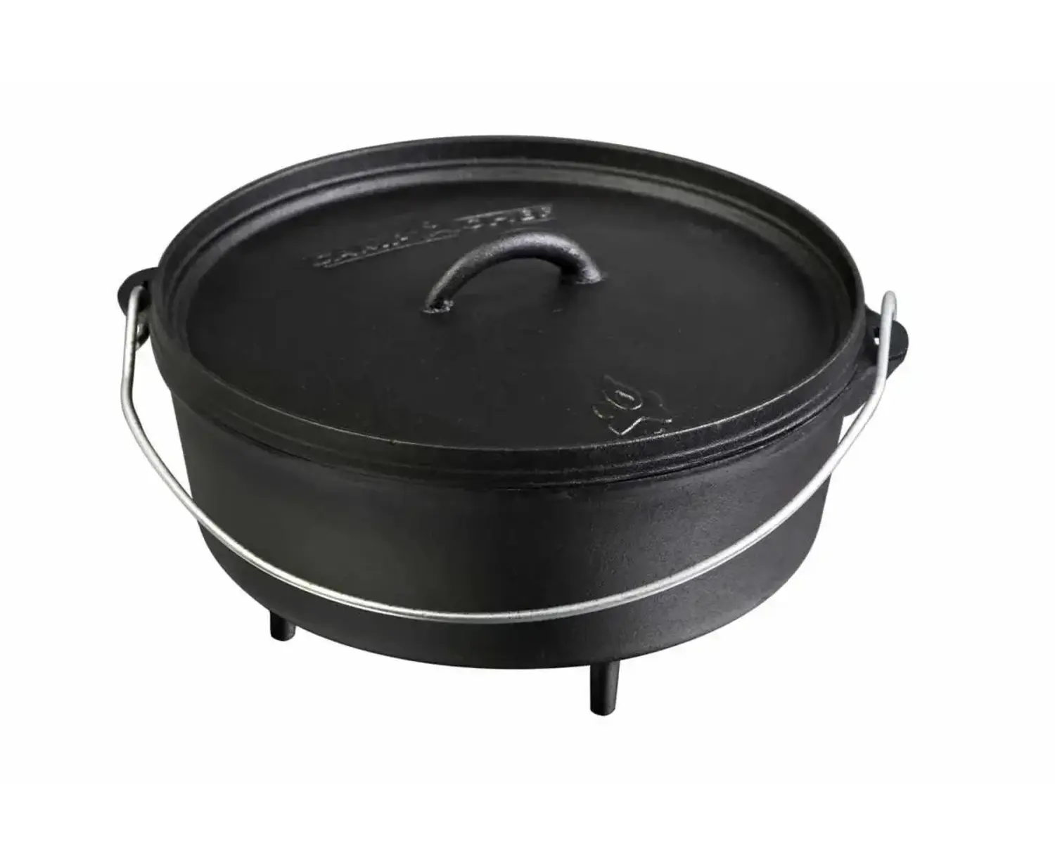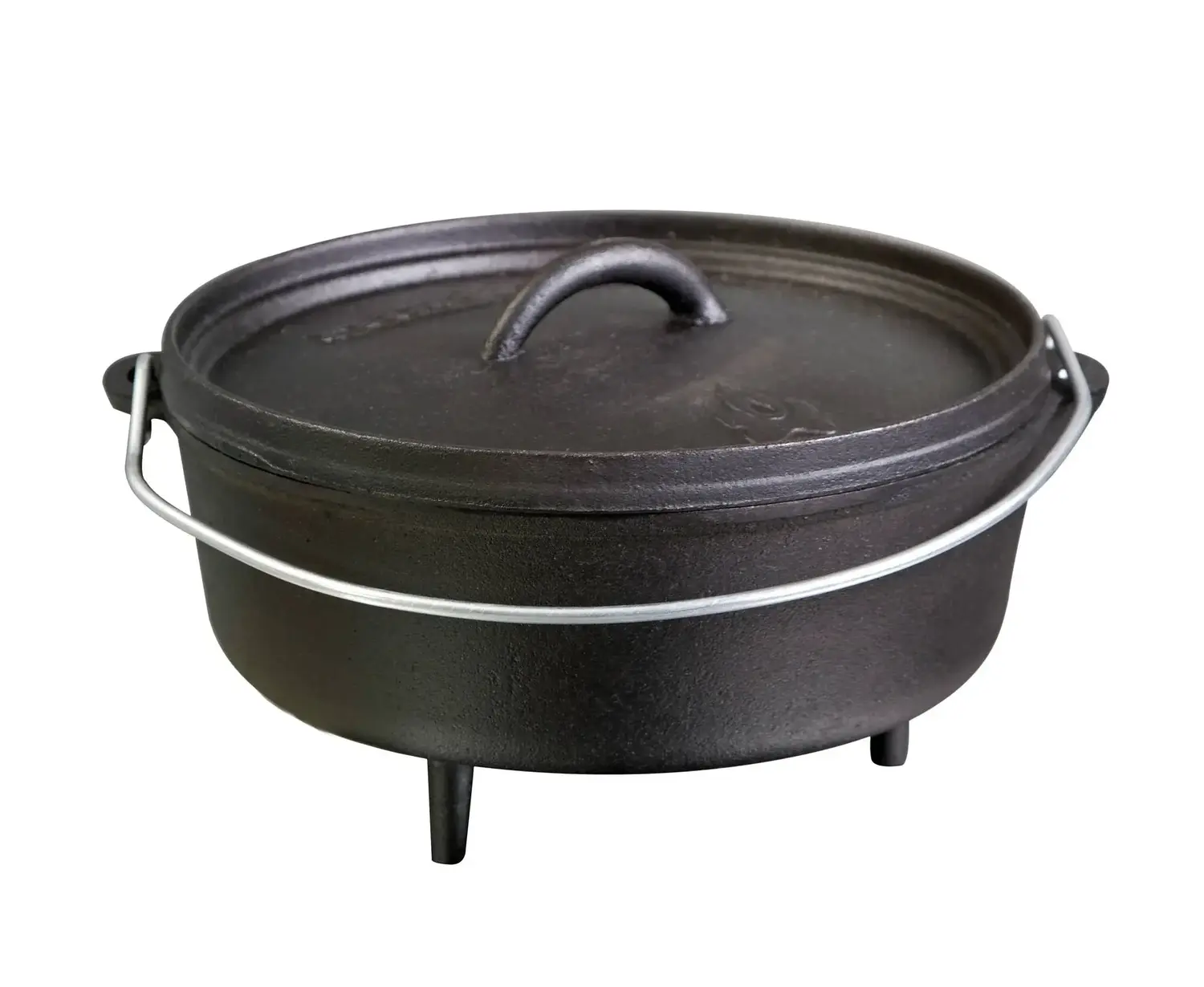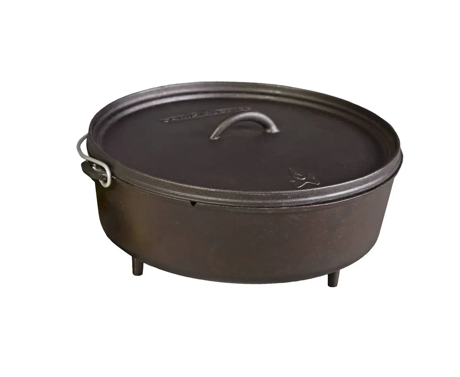 This cast iron piece has a flange on the lid making it excellent for cooking with charcoal briquettes or wood. Best of all, each piece of our cast iron cookware comes pre-seasoned with our True Seasoned Finish, providing a natural, easy-release surface that is ready to cook on. Add this oven to your Dutch oven collection today.