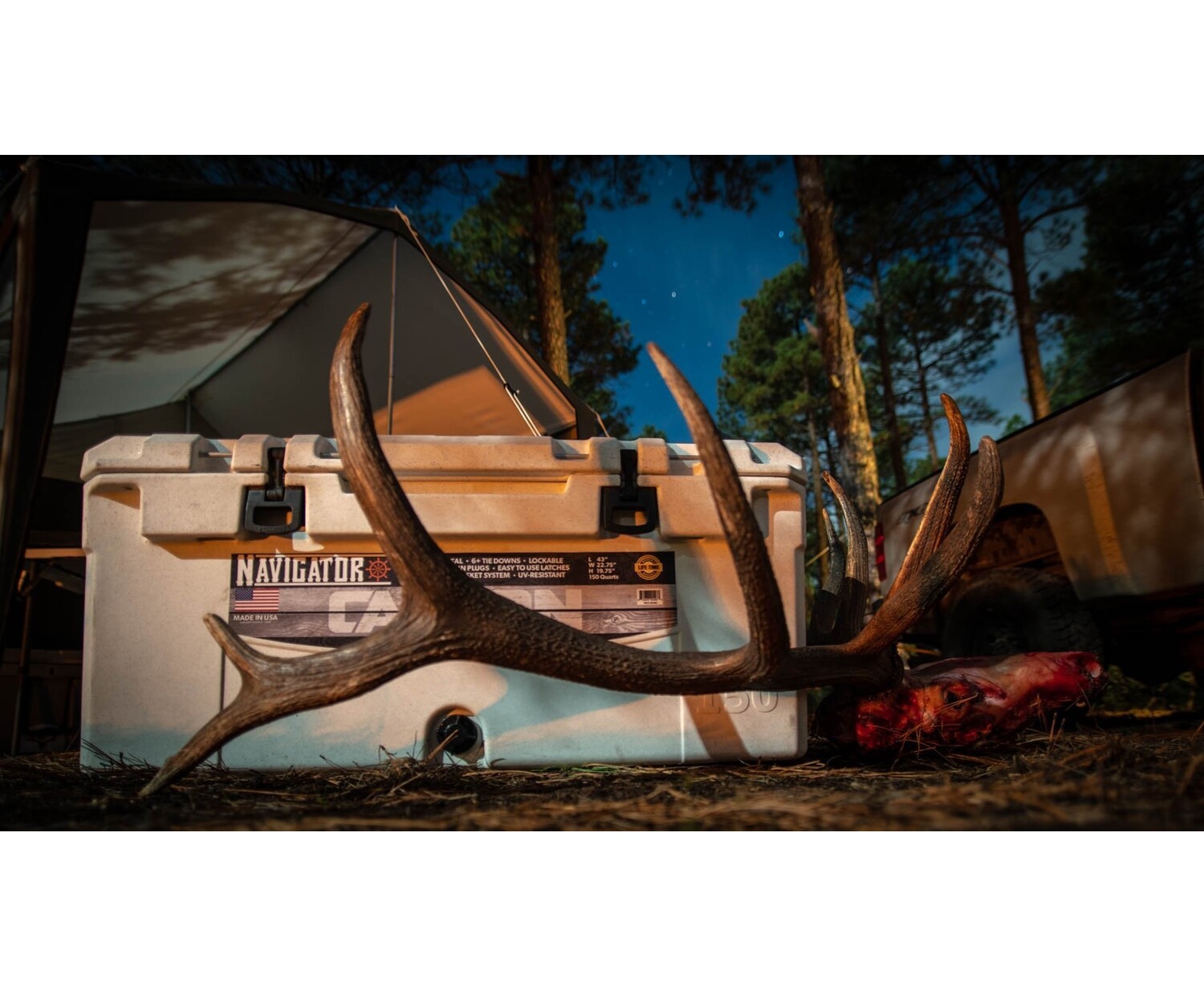 CloseProudly manufactured 100% in the USA, mostly in our home state of Arizona, the Pro 150 embodies large adventures. From white water rapids, to once-in-a-lifetime big game hunts, or simply hosting big groups of family or friends, the Pro 150 can navigate whatever the adventure calls for. Dual drain plugs, exceptional 2 tier storage solutions, and multiple tie-down locations were all factors we held to the highest standard while engineering this beast of a cooler. There is no other cooler that compares to the performance and design of the Pro 150. And it’s of course backed by our unconditional, no-hassle, no-fault lifetime warranty.
