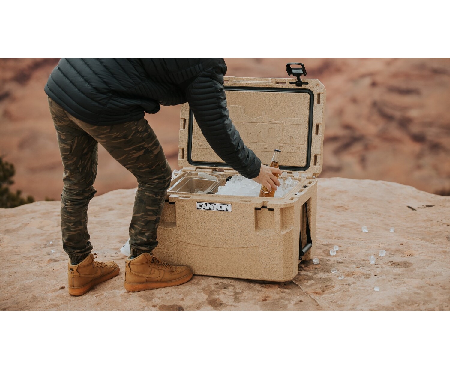 Compact precision, built for serious play. Rated Best Rotomolded Cooler by Men's Journal(June 2025) and built for the outdoor-obsessed, when only the BEST outdoor equipment will do, this medium sized cooler is ideal for all kinds of adventures. Great for Jeeps, Subaru's and others moderately constrained for space. World class ice retention, unbreakable cam latches, and oversized drain plugs all come standard. Canyon even includes a divider that turns into a super handy food grade table you can attach anywhere on the cooler. And it’s, of course, backed by our no-hassle, free parts and a lifetime warranty. Engineered and assembled in Arizona.