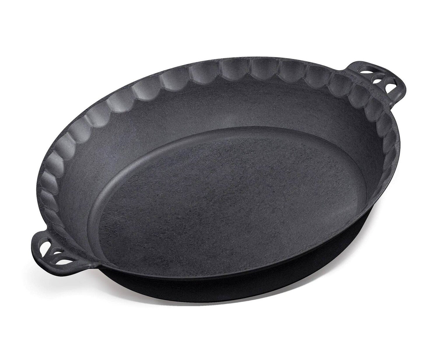 Closeake delectable pies to perfection with a true-seasoned Cast Iron Pie Pan. Cast iron creates even heat distribution giving you a golden brown crust every time. Decorative handles have been added for convenience.