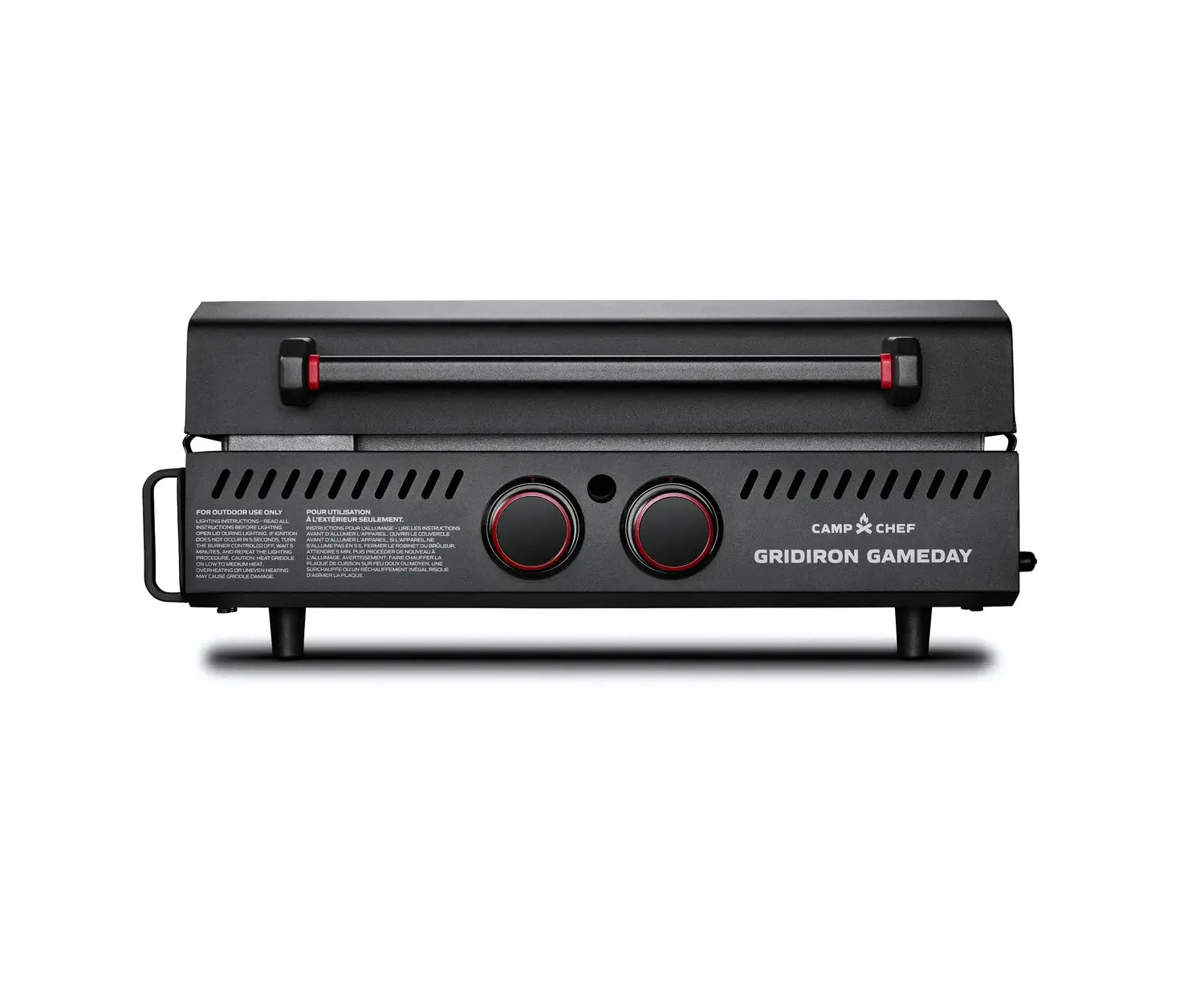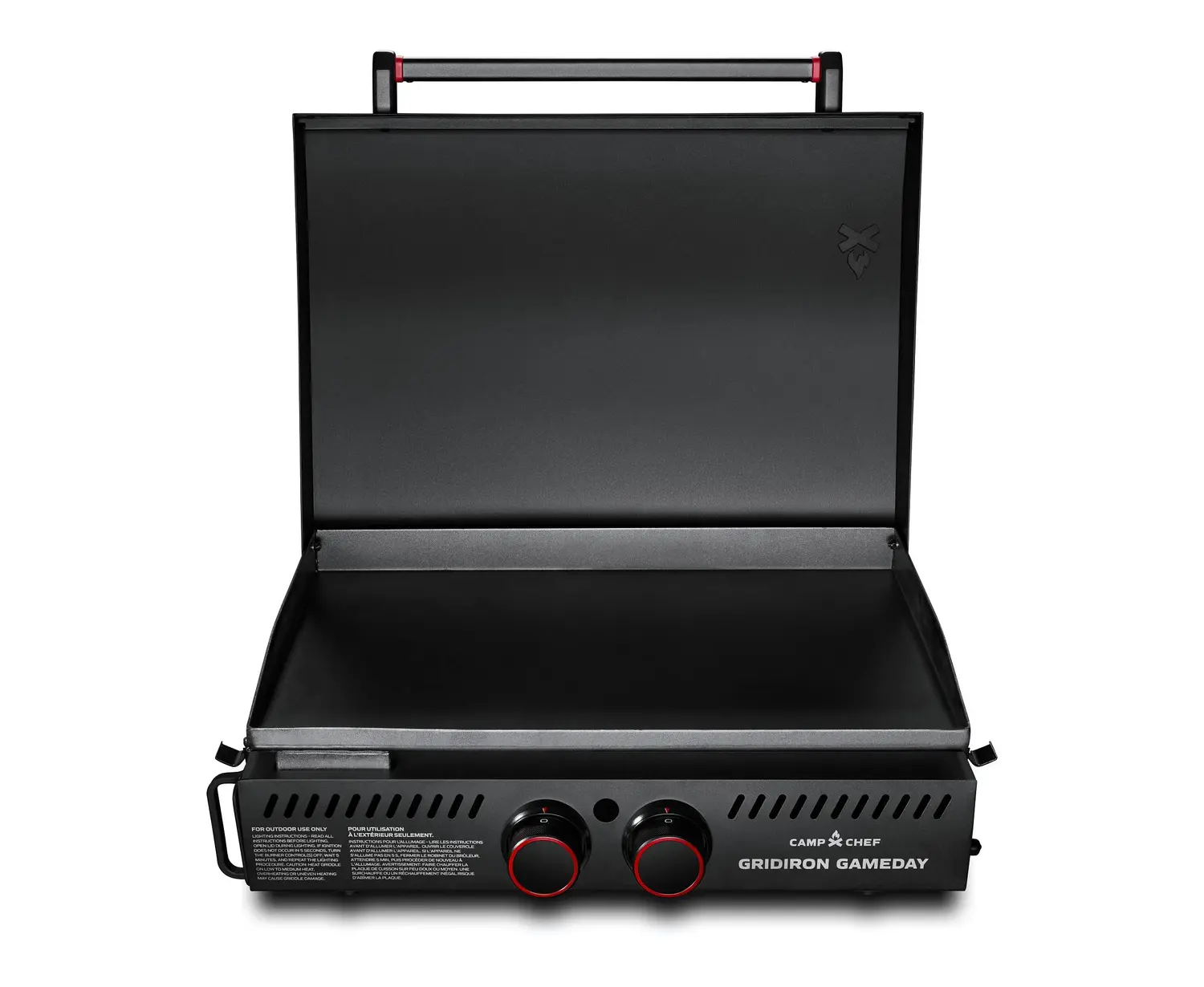 With a large cooking surface, portable design, and features that address common tailgate challenges like uneven ground and transporting stoves, the Gridiron Gameday simplifies outdoor cooking. The hinged lid locks in place for transport and functions as a versatile tool during meals. The updated grease system helps speed up cleanup so nothing gets in the way of the game.