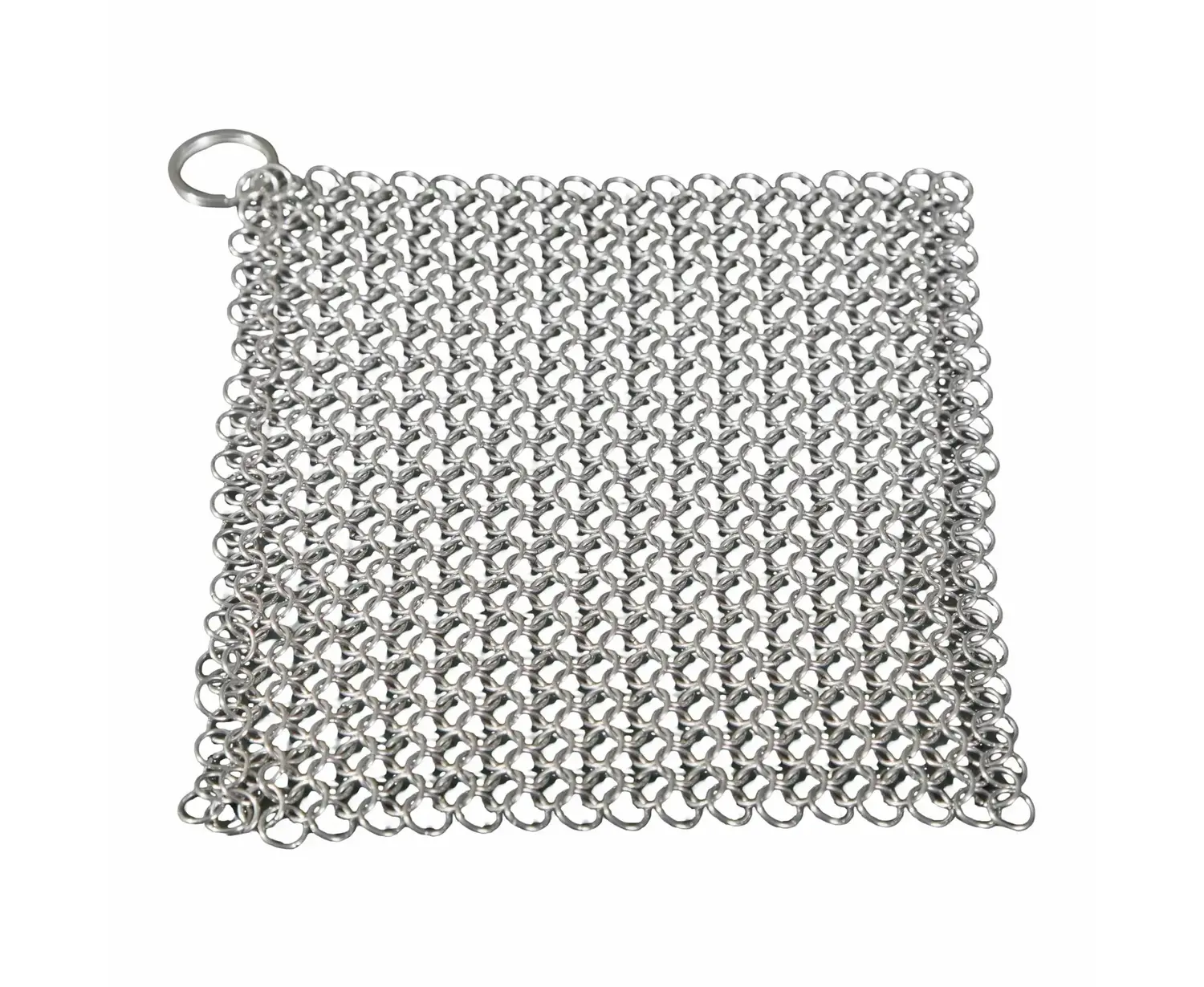 CloseClean cast iron, steel griddles, and other cookware with the chain mail scrubber.