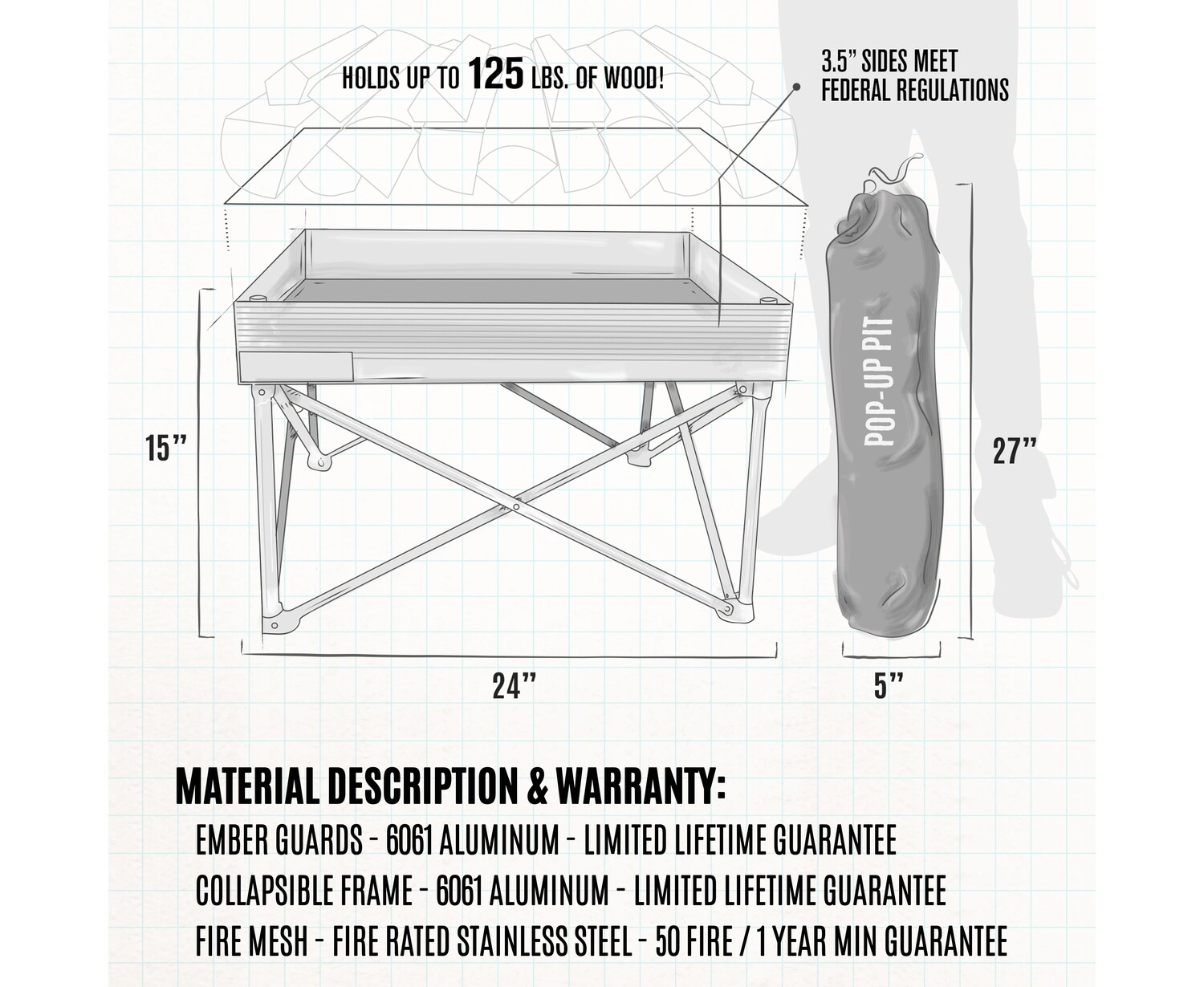 - Innovative design cuts the bulk and weight of traditional fire pits and the result is a minimal, packable full-sized fire pit
