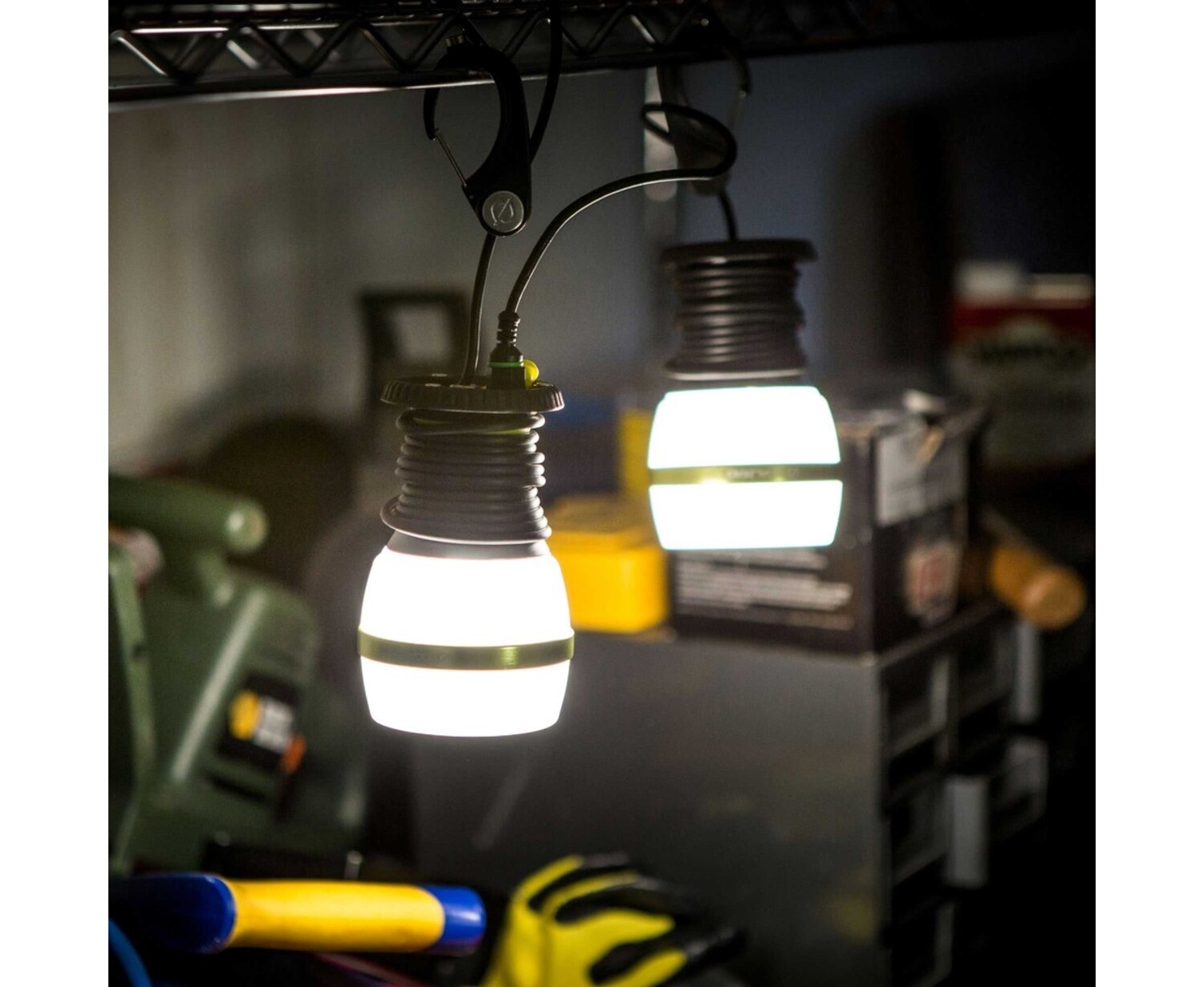 Bright LED light with 350 Lumens, built-in carabiner and magnets so it's quick to hang anywhere.