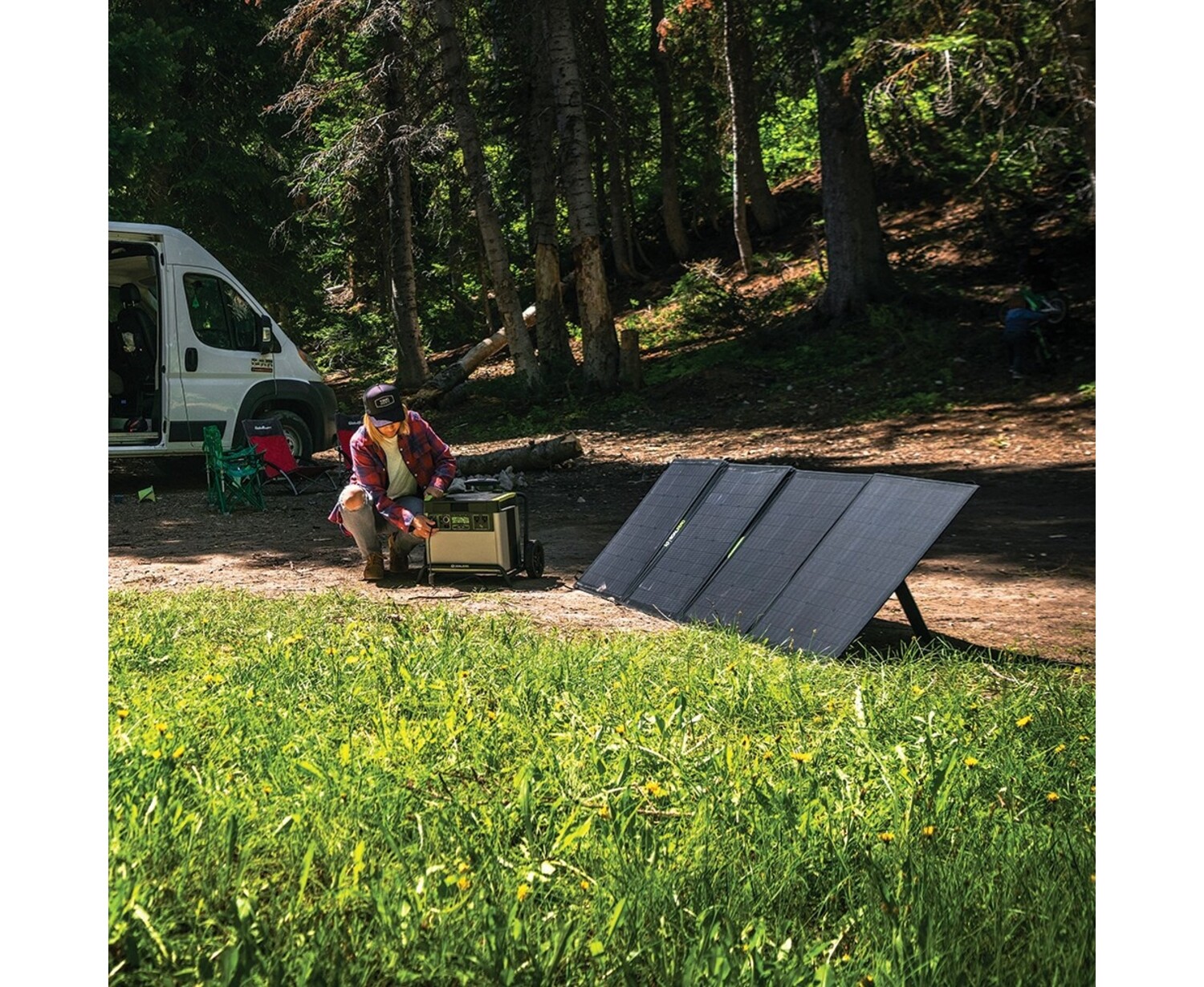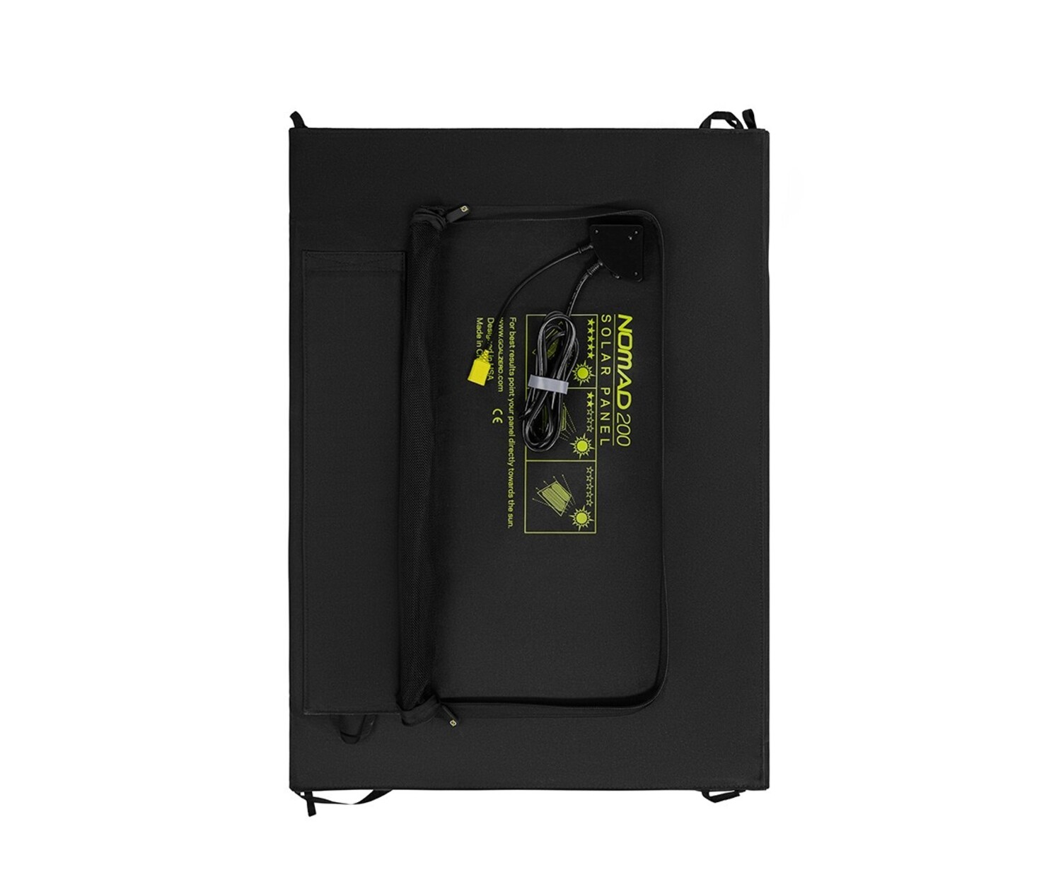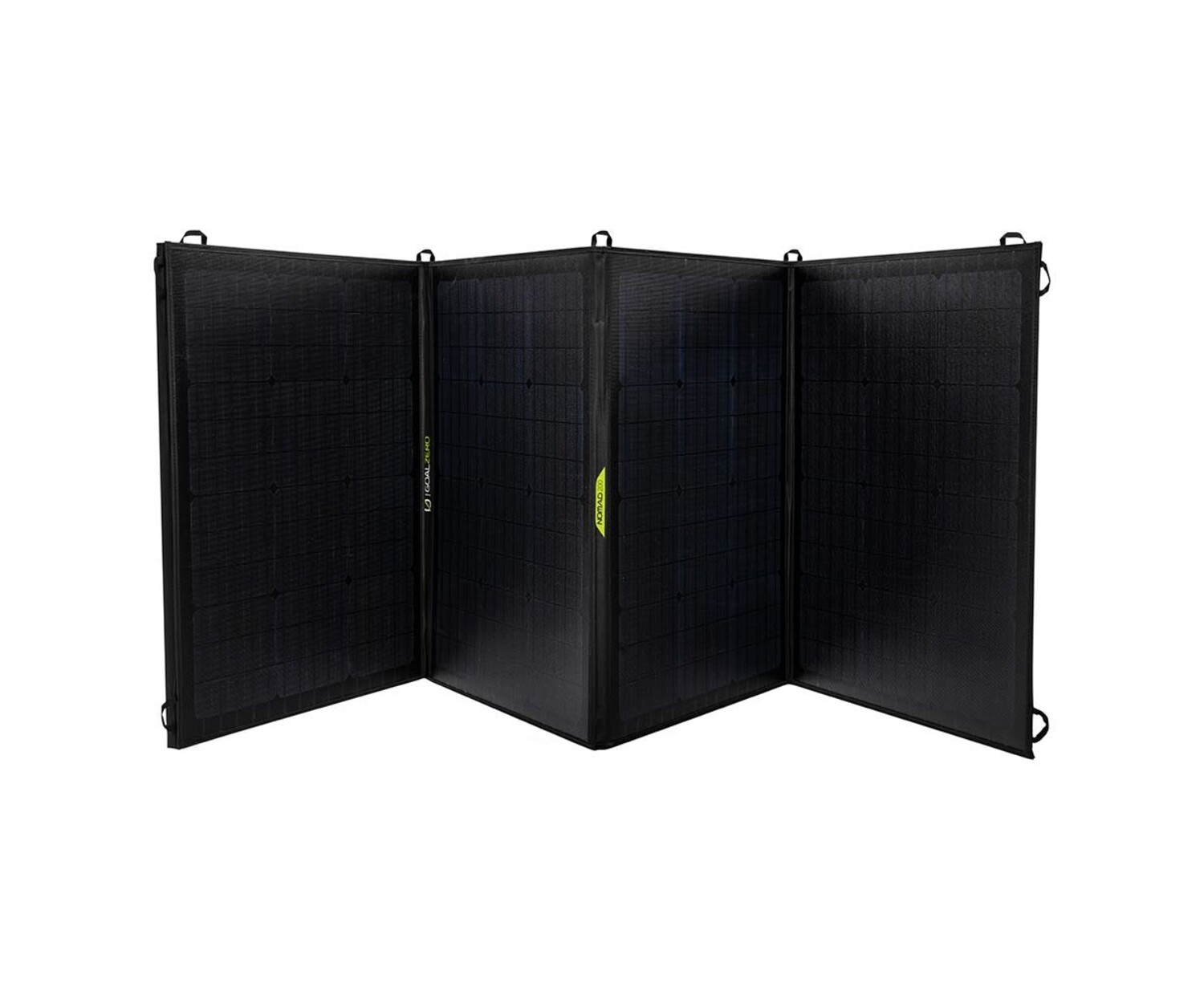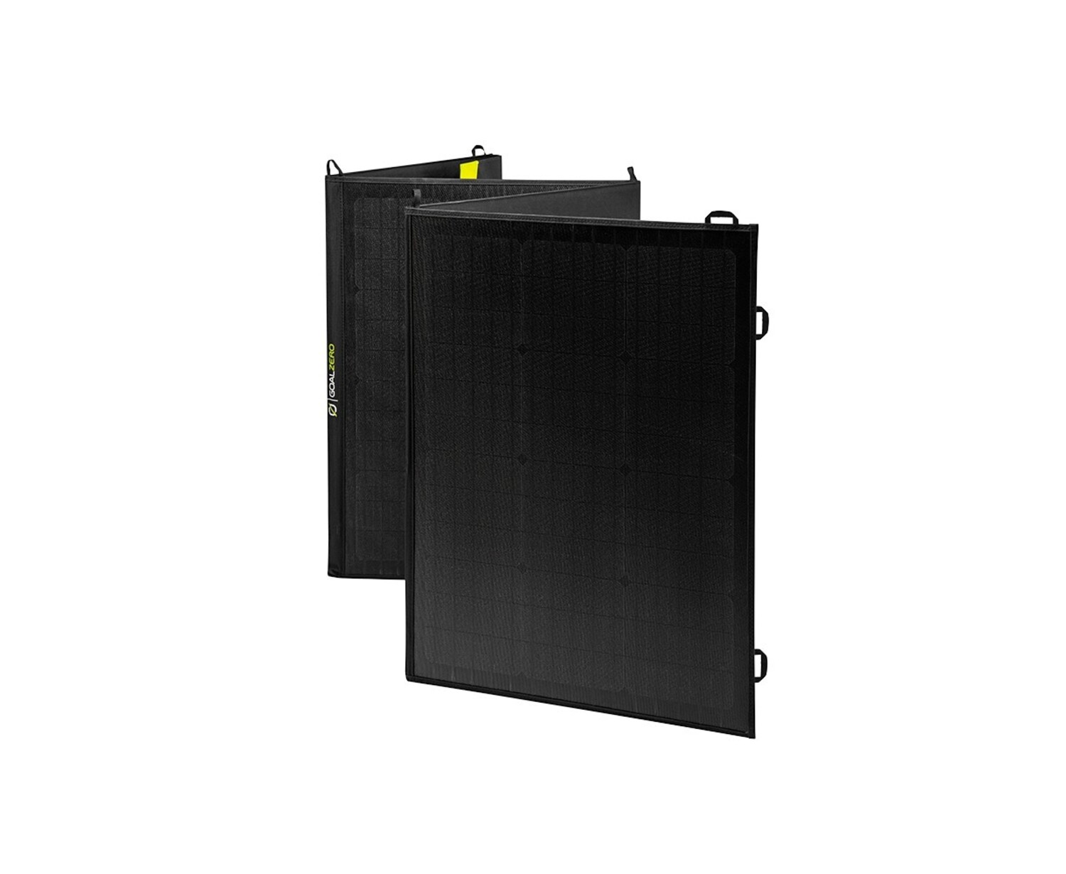 Four monocrystalline panels enclosed in a protective case fold down to a compact profile for easy storage. Hanging loops allow you to strap the panel to vehicles, tents, and more.