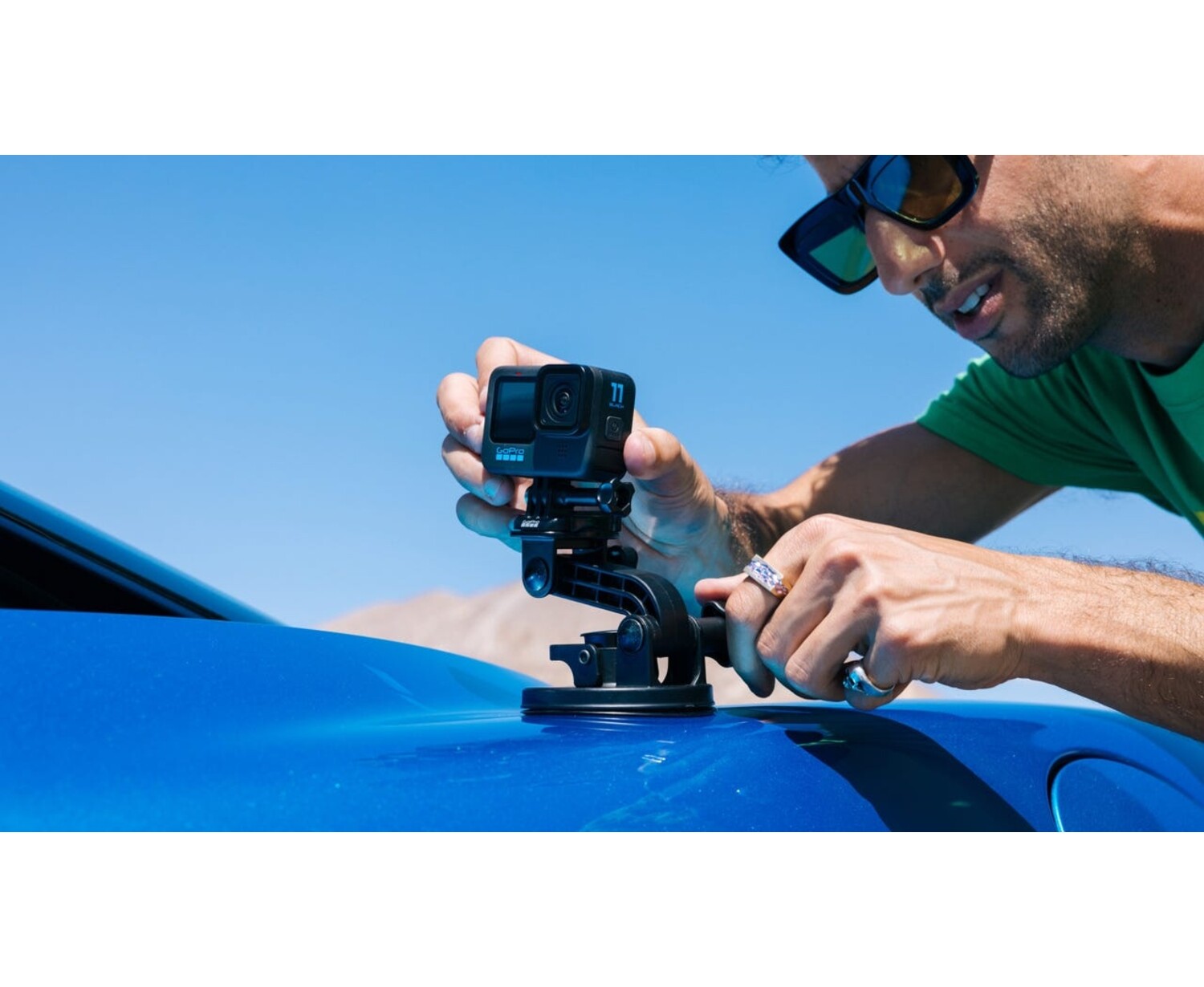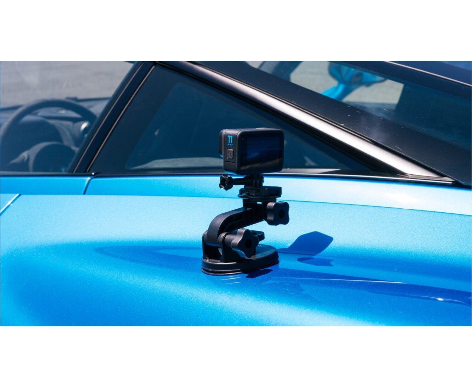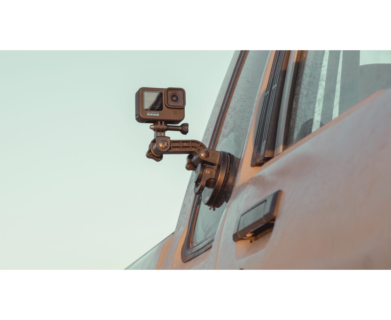 Attach your GoPro to cars, boats, motorcycles and more. This industrial-strength Suction Cup mount is proven at speeds of 150+ mph and engineered for stability and a broad range of motion. Adjustable arms allow for ultra compact mounting. Includes a standard base and a quick release base for moving conveniently between shots and locations. For maximum holding strength, attach to a clean surface.
