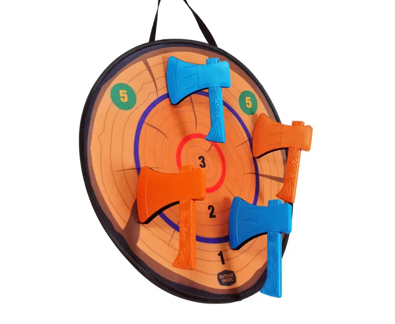 Includes 4 foam axes in 2 colors, 1 collapsible target, instructions and travel bag.