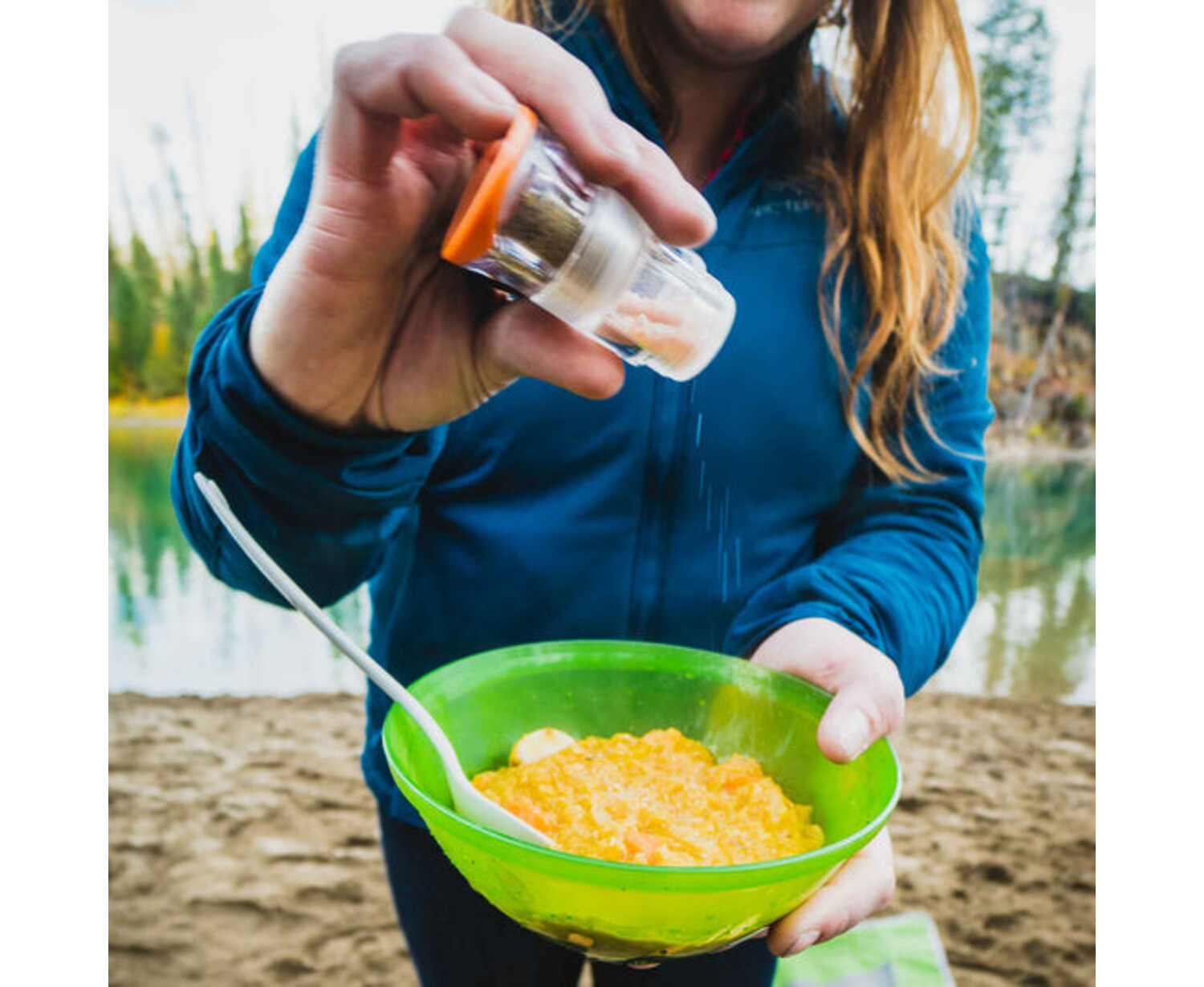 Includes: Salt + Pepper Shaker, 2 Universal Spicers, Removable Spice Labels, Large and small screens for different spices, Filler Cap