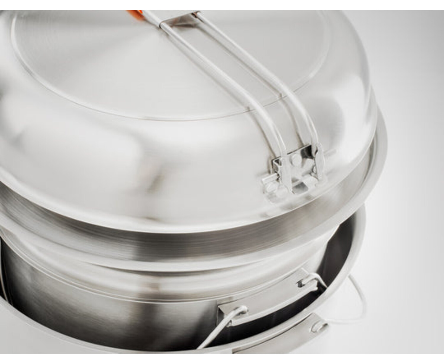 CloseRally the troops for dinner – and breakfast – there’s plenty to eat. Large enough for eight – even ten – people, this our big daddy stainless cookset.
