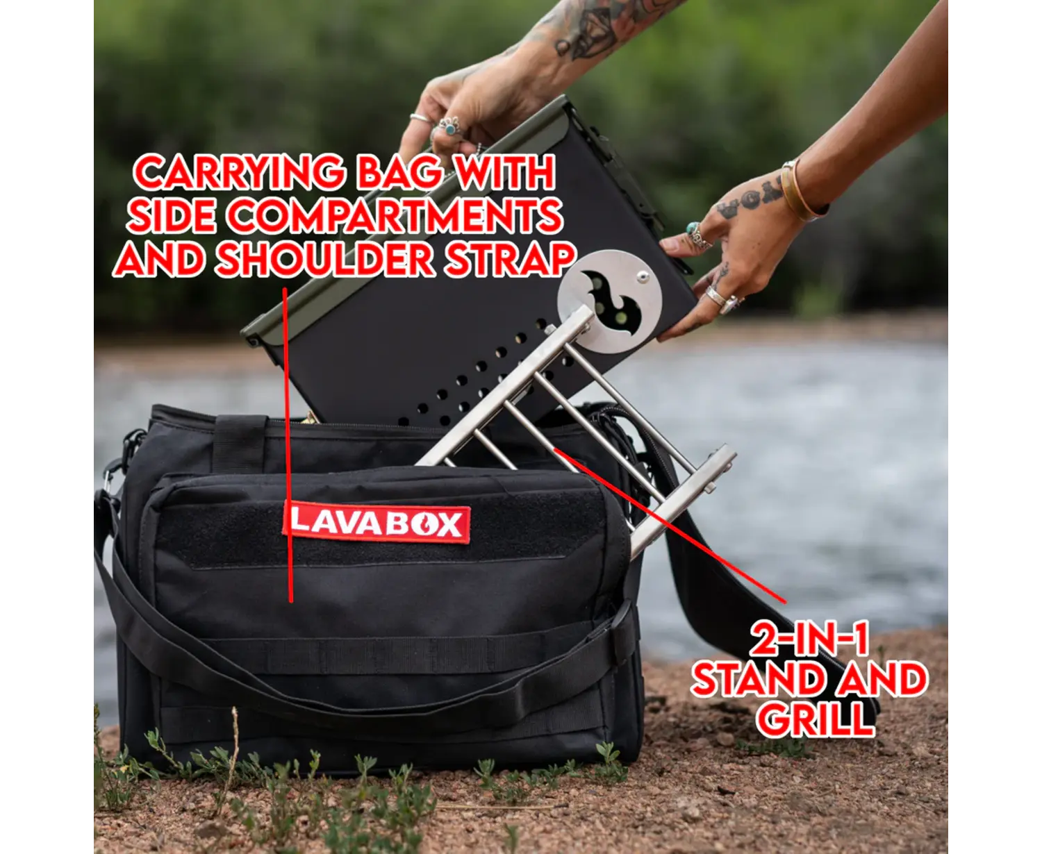 When it’s time to go, it’s time to go! Make a hasty yet stylish retreat with this range bag that carries all your goodies including your LavaBox. Throw in your regulator, long lighter, Over/Under Grill Thingy, a P320, a copy of Mad magazine, a flask of Eagle Rare, and your Pop’s home-made jerky. Man, you are ready.