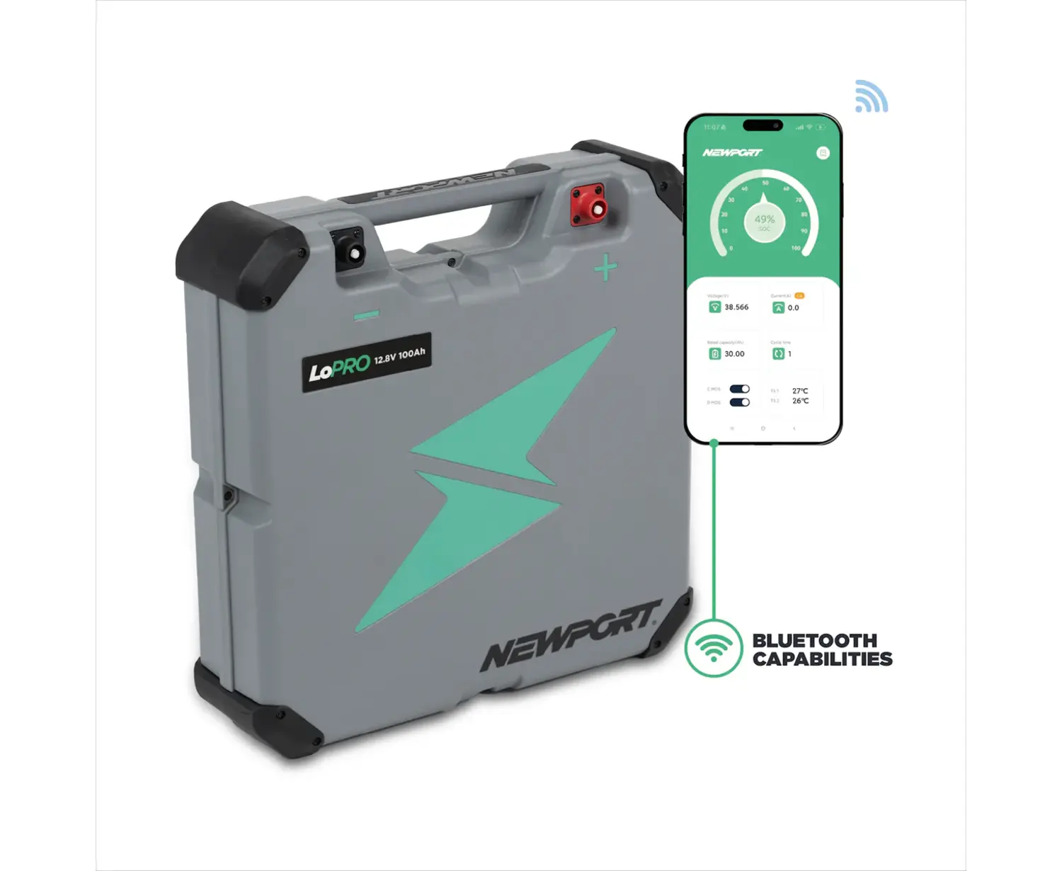(O) Optimized ConnectivityExperience optimized connectivity with Newport’s bluetooth enabled battery management system, while Compression Lugs provide expandable power with no tools required.