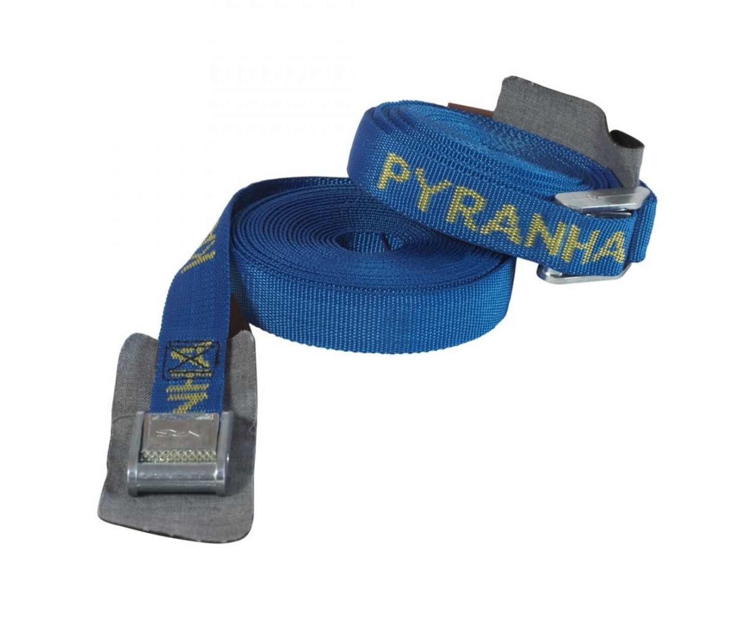 Reliable tie-down straps that will stand out from the spaghetti tangle. These simple, solid cam straps will give you peace of mind when transporting your Pyranha Kayak, and they'll even work on other brands of kayak if your paddling buddies haven't seen the light yet! - Solid in pairs - 25mm / 1" wide polypropylene webbing - 680kg / 1,500lbs tensile strength - UV protectant treated - Twin stainless steel cam buckle springs for a secure grip - Length woven into the webbing - Waterproof tag for name and contact details - Boat protection flap with felt underside - Angled webbing end for easy buckle threading - Heavy-duty, highly corrosion resistant buckle