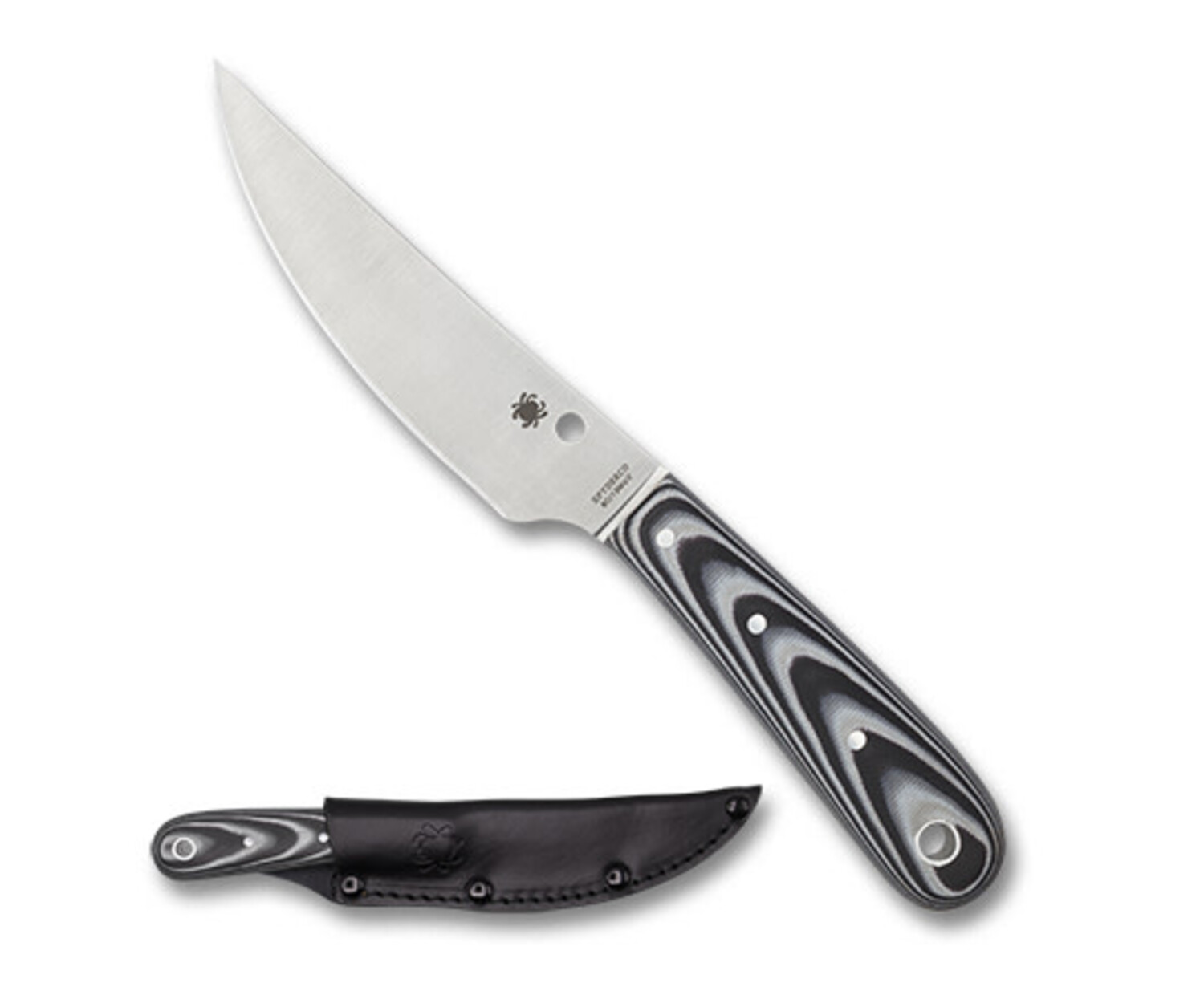 CloseCustom knifemaker Phil Wilson is an avid hunter and fisherman who incorporates his extensive outdoor experience into every one of his designs. The Spyderco Bow River™ faithfully captures the spirit and detail of Wilson’s custom creation and delivers it in a package specifically geared toward budget-conscious adventurers. This compact, all-purpose design features a full-flat-ground, trailing-point blade crafted from 8Cr13MoV stainless steel. The blade is paired with a contoured, ergonomic, full-tang handle with layered black and gray G-10 scales. Offering exceptional design and performance at an affordable price, the Bow River comes complete with a high-quality leather pouch-style sheath.