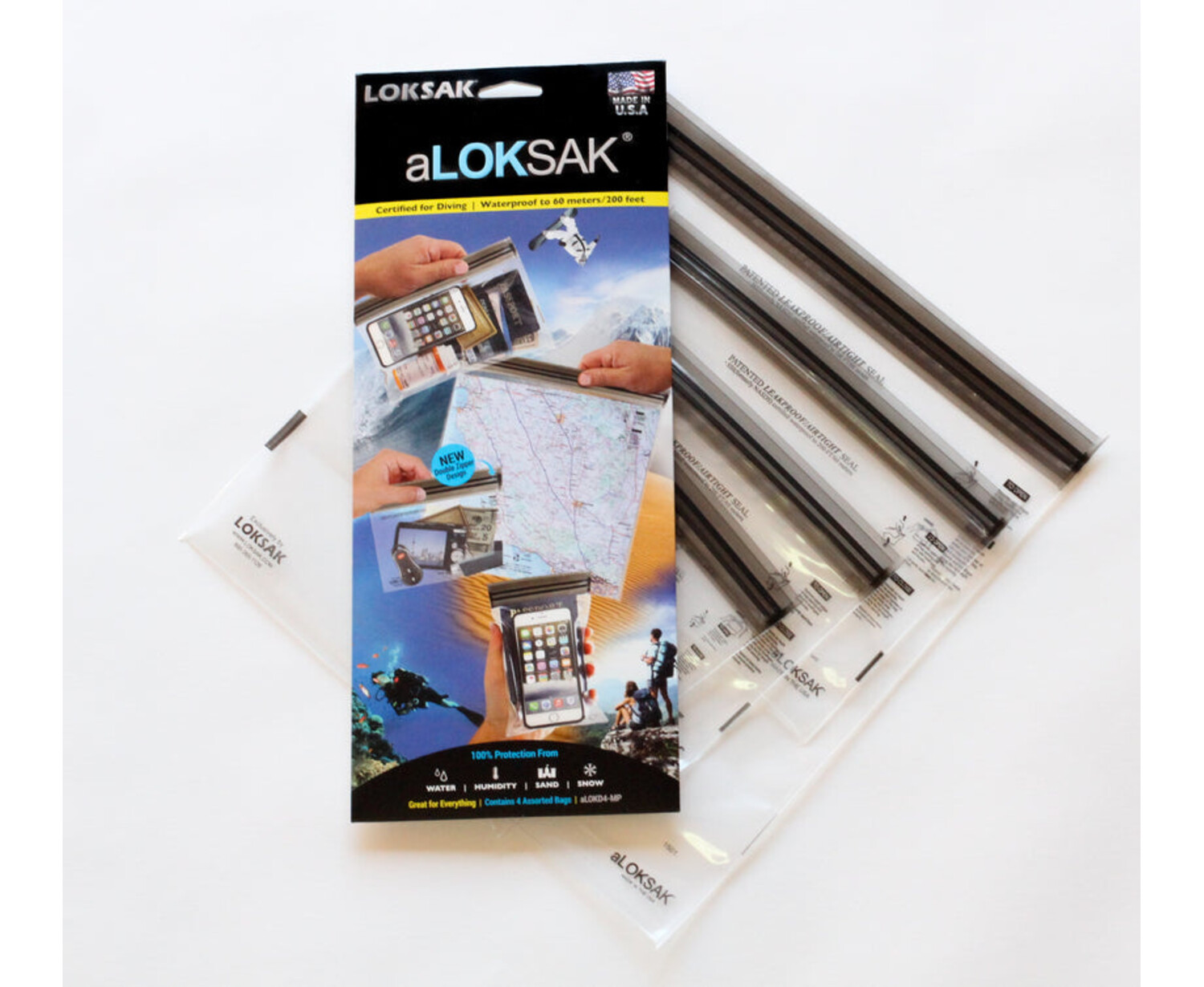 Electronics and personal items are damaged from exposure to the environment. aLOKSAK is the only re-sealable, flexible storage bag offering protection from the elements. The multi-patented, light-weight, and hermetically sealed storage system prevents air, humidity, water, dust and sand and snow from harming your valuables. You can actually use many touch screen devices for most operations while Aloksak is sealed, and, of course, store maps, books or wallets. Lightweight and disposable–it can be used multiple times.