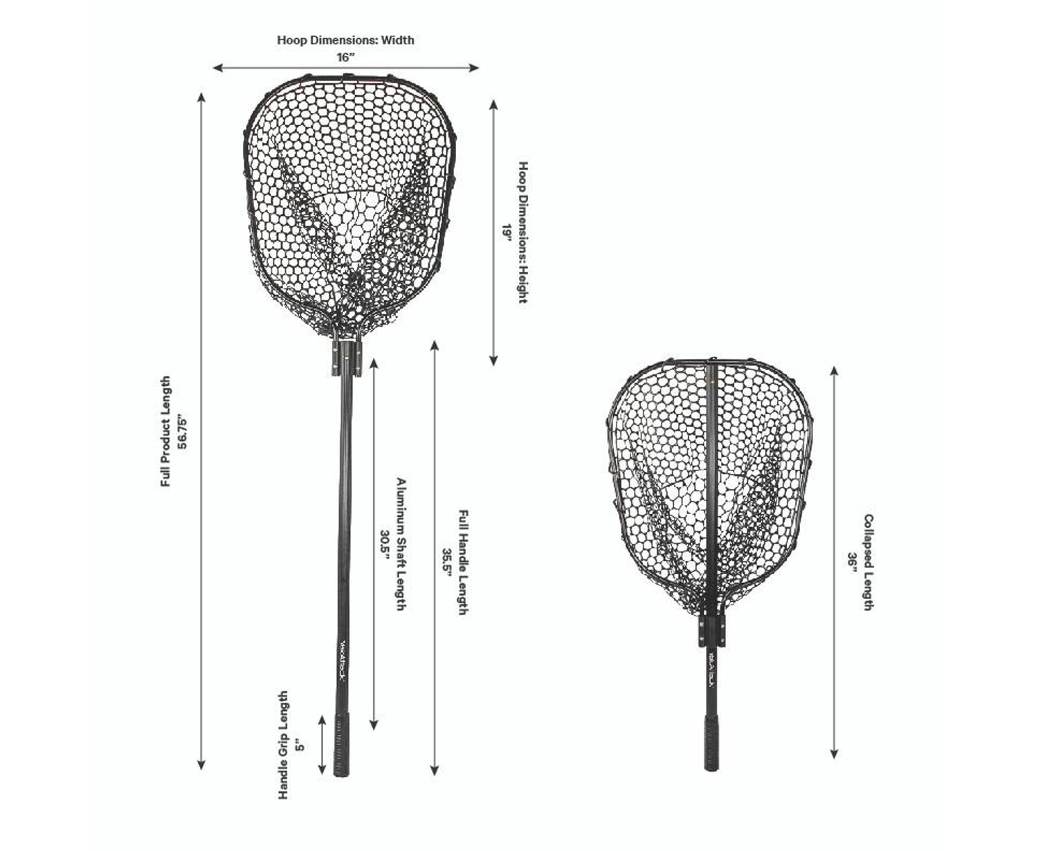 The net features a lightweight anodized aluminum 24” handle. For storage and transportation, the handle collapsed down to an overall length of 36” and when in use measures 56.75” when extended. Made from high-quality materials, the YakAttack landing net is built to withstand the rigors of saltwater and freshwater fishing. Its lightweight design ensures easy transport and maneuverability without compromising strength or reliability, making it an essential tool for a successful trip on the water.