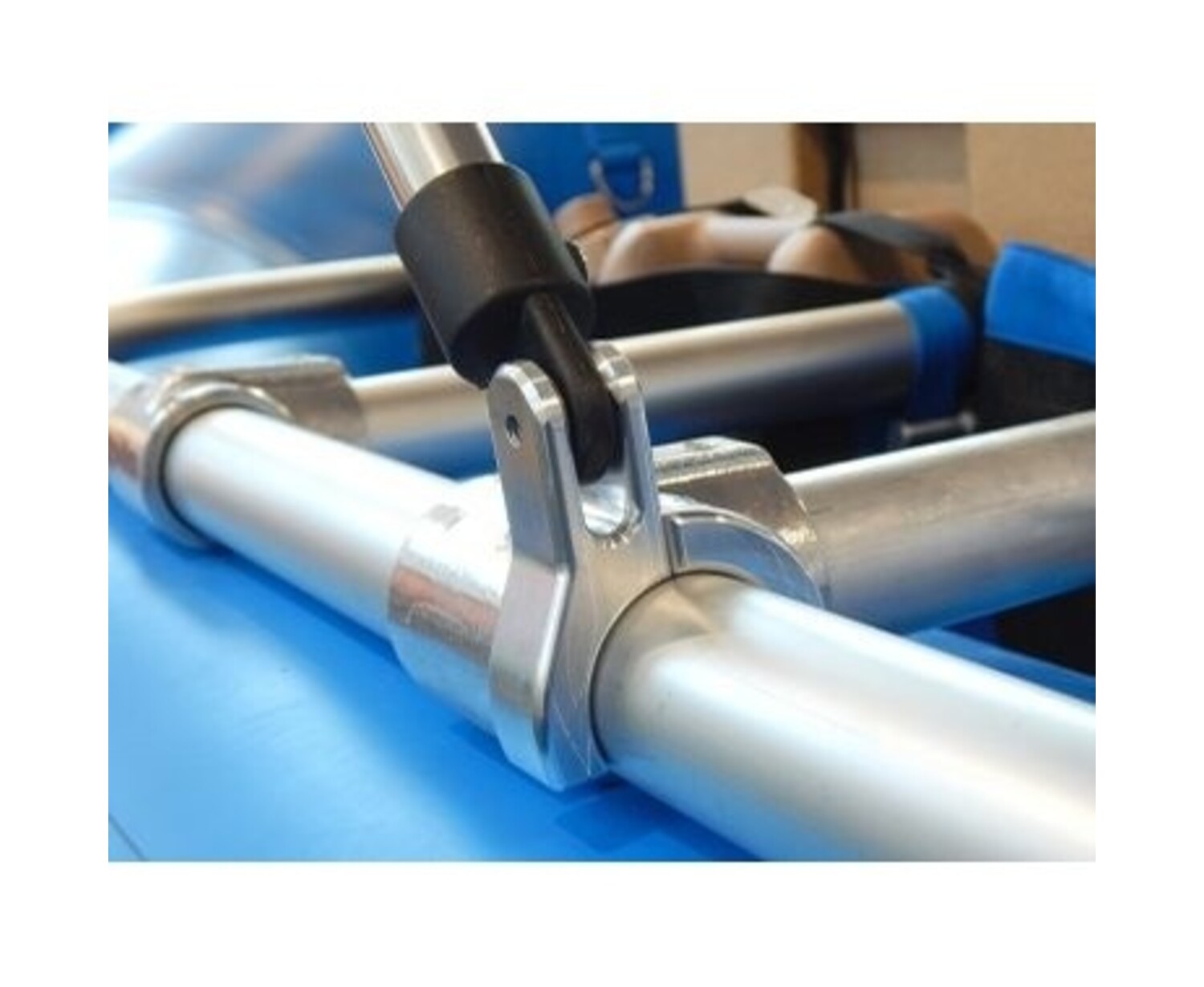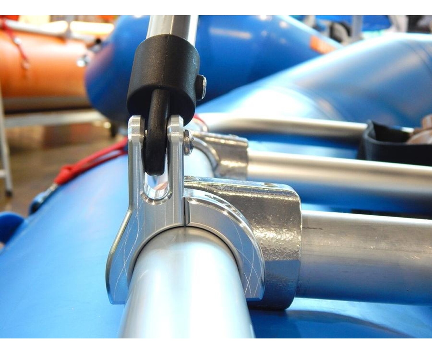 These new mounts are awesome! Sold as a pair, the Down river Bimini Mounts easily attach to your 1.25in(LD) or 1.5in(XD) frame pipe by simply tightening a screw. The plastic Bimini end cap slides nicely between two metal prongs and is locked in place by a screw, allowing the Bimini to be stowed quickly. The 1.25in will fit NRS frames.