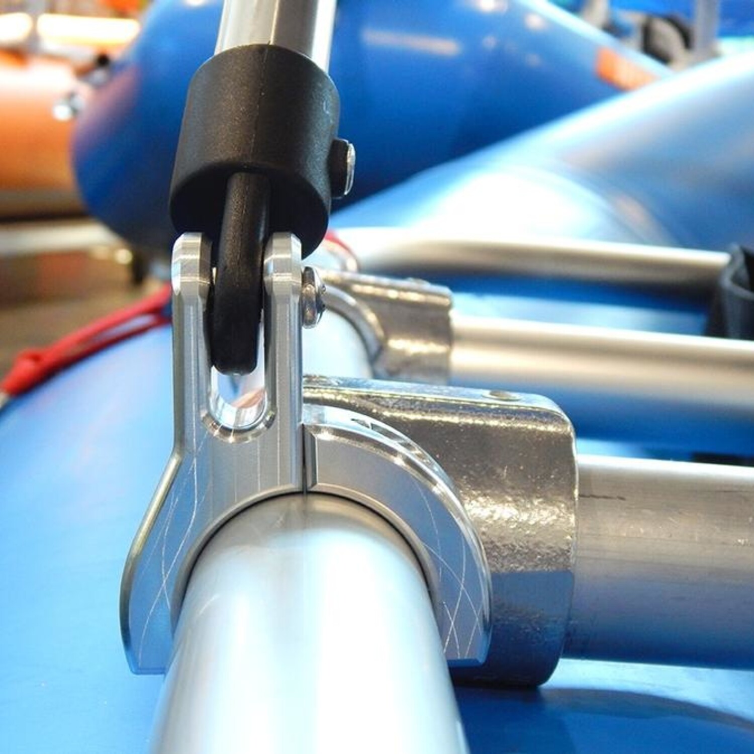 These new mounts are awesome! Sold as a pair, the Down river Bimini Mounts easily attach to your 1.25in(LD) or 1.5in(XD) frame pipe by simply tightening a screw. The plastic Bimini end cap slides nicely between two metal prongs and is locked in place by a screw, allowing the Bimini to be stowed quickly. The 1.25in will fit NRS frames.