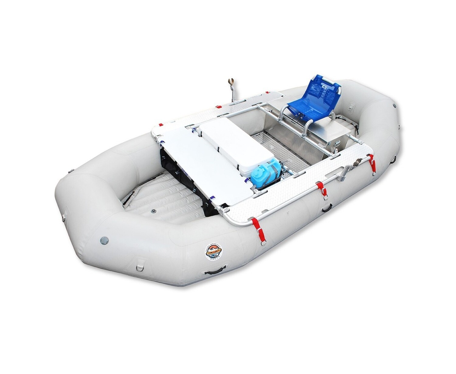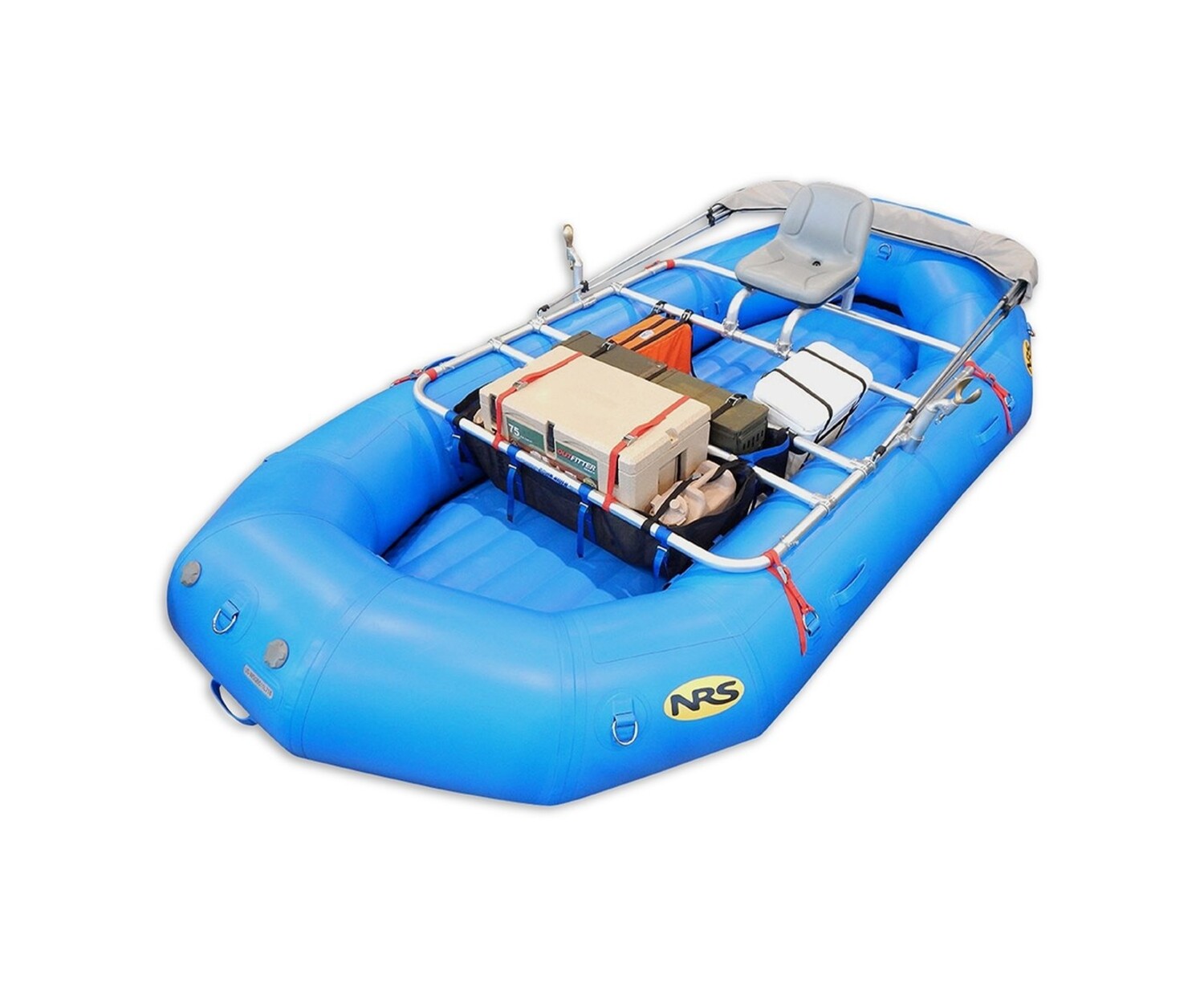 There's no suprise the Down River Colorado 4-Bay Diamond Plate Raft Frame XD is one of our most popular frames. It combines durability and practicality, and has all the feature you'll need for a true gear hauling rig. The diamond plate decks make for secure footing when rigging the boat and can also be used for additional gear storage. This frame is designed for boats 16ft and under and is ideal for extended trips, but isn't overkill for the day floater. This frame efficiently carries a large cooler and dry box and has an additional bay for extra storage or seating for passengers with storage underneath. The frame easily breaks down into nine pieces to be packed by car, plane or burro. The Down River Colorado 4-Bay Diamond Plate Raft Frame XD includes kick bar and oar towers. (Frame pictured with additional accessories)