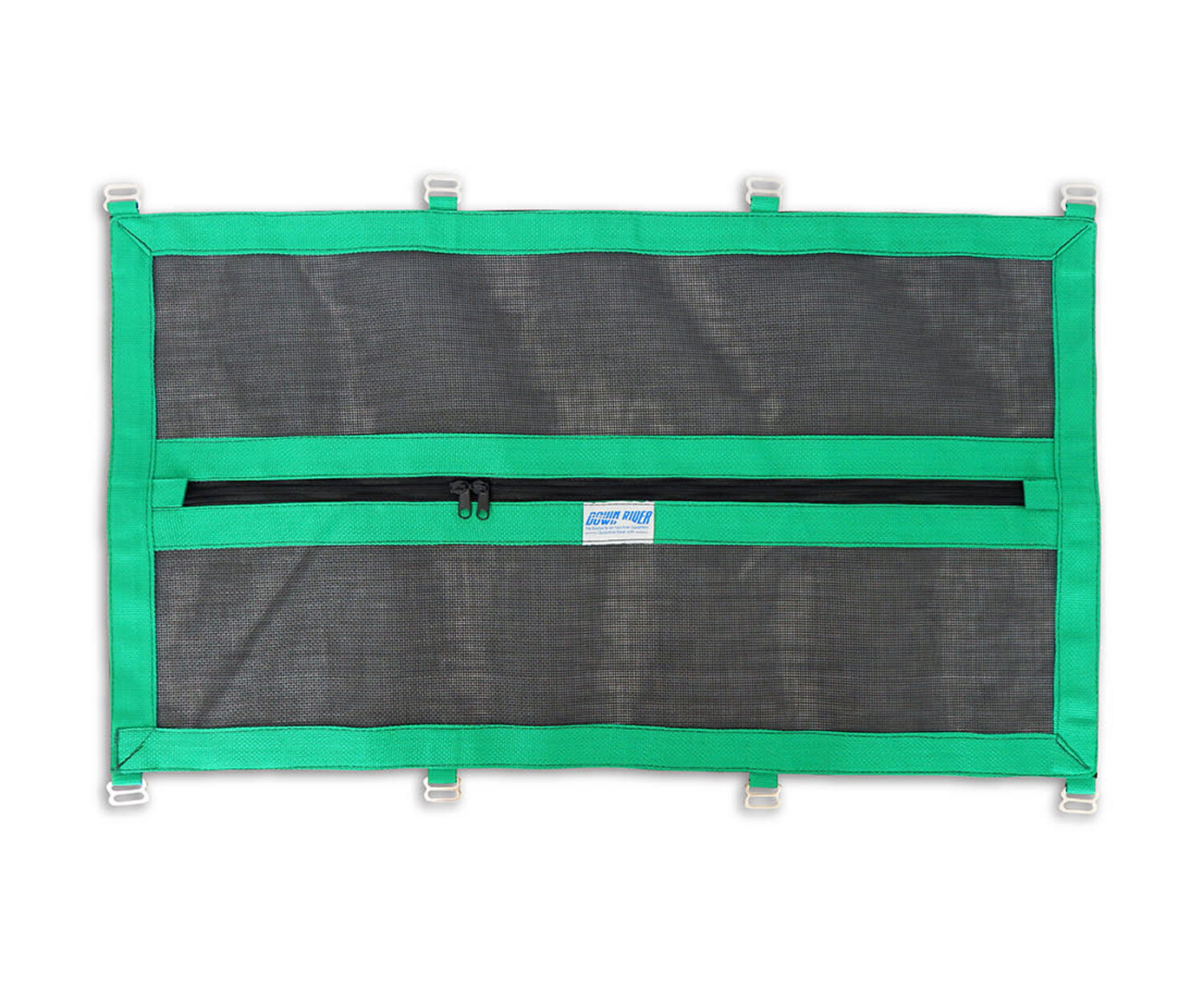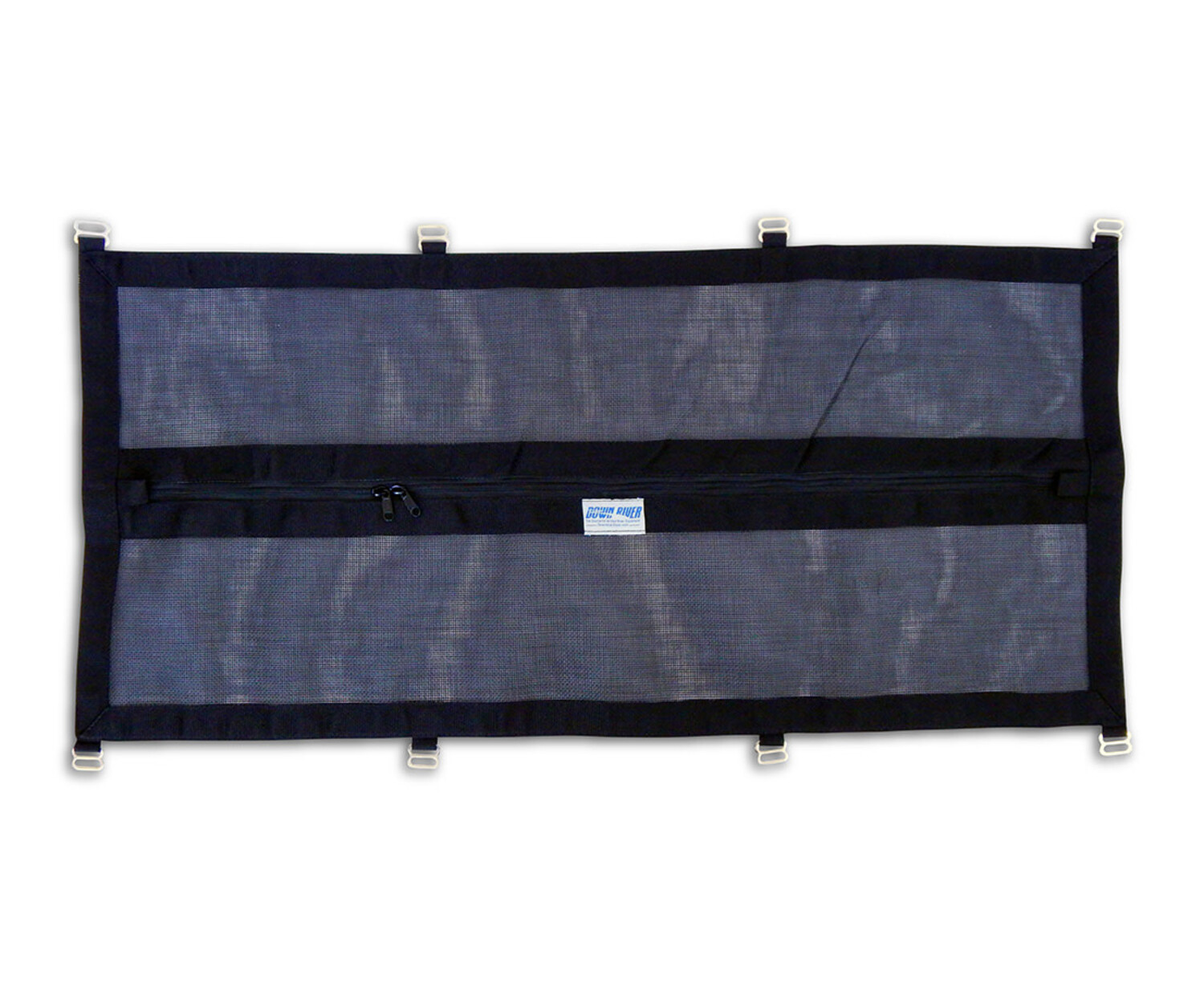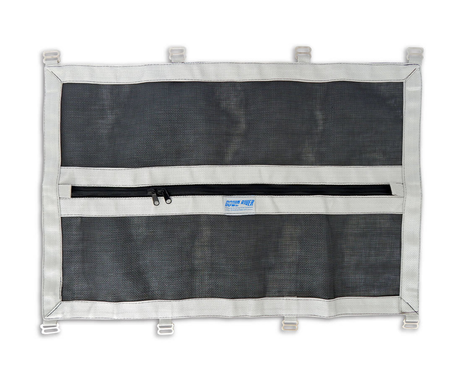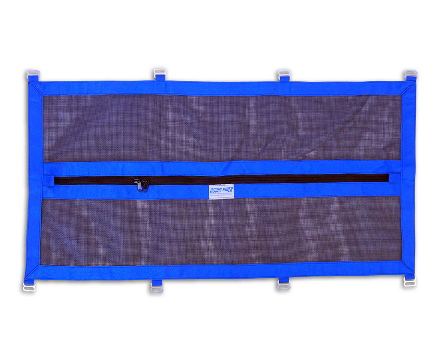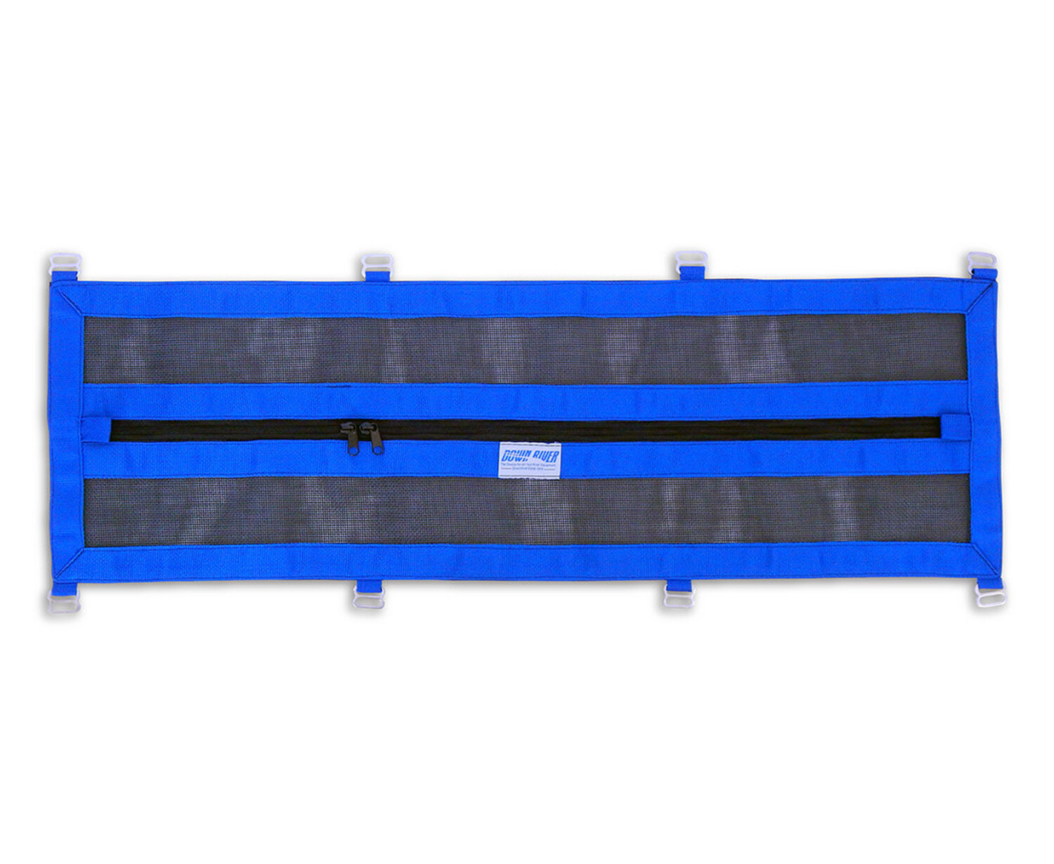 The Down River Drop Bag Cover is the perfect accessory for securing miscellaneous gear within your DRE Drop Bag. The cover attaches to the bag by threading the drop bag loop straps through the metal slides attached to the cover, leaving the bag setup for quick and easy zipper access. No more loosening a a ton of straps to get to your gear, its just a zip away. The cover is made using our UV resistant webbing and durable Utility Mesh (black). Keep your gear nice and tight, the Down River Drop Bag Cover.