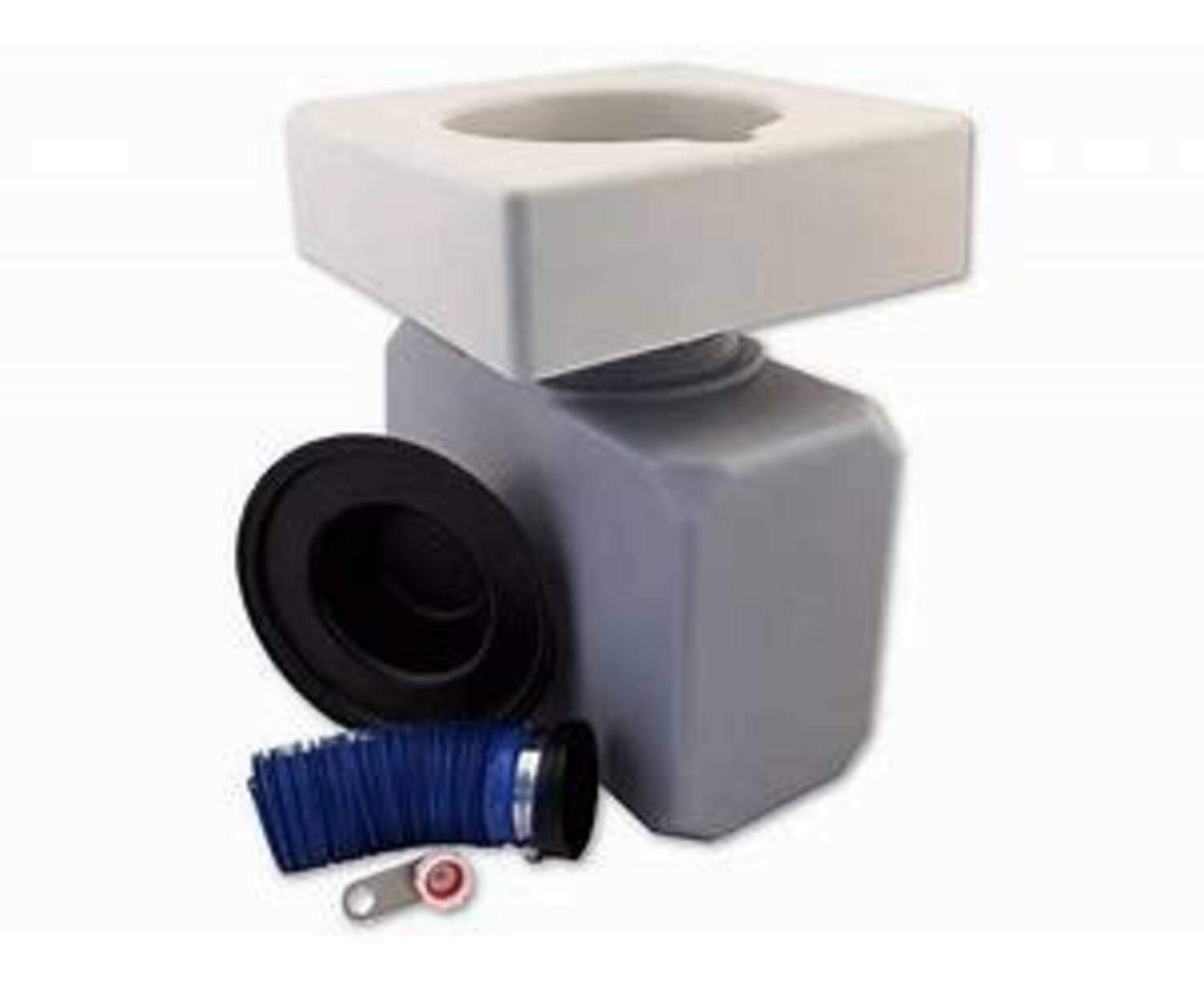 CloseIts cubical shape saves 20% of the space required by a round bucket type toilet system. The complete system includes a 5.5 gal. tank, full sized comfortable seat with lid, washout kit for flushing, pressure relief vent, and buttress threaded, gasketed closures.