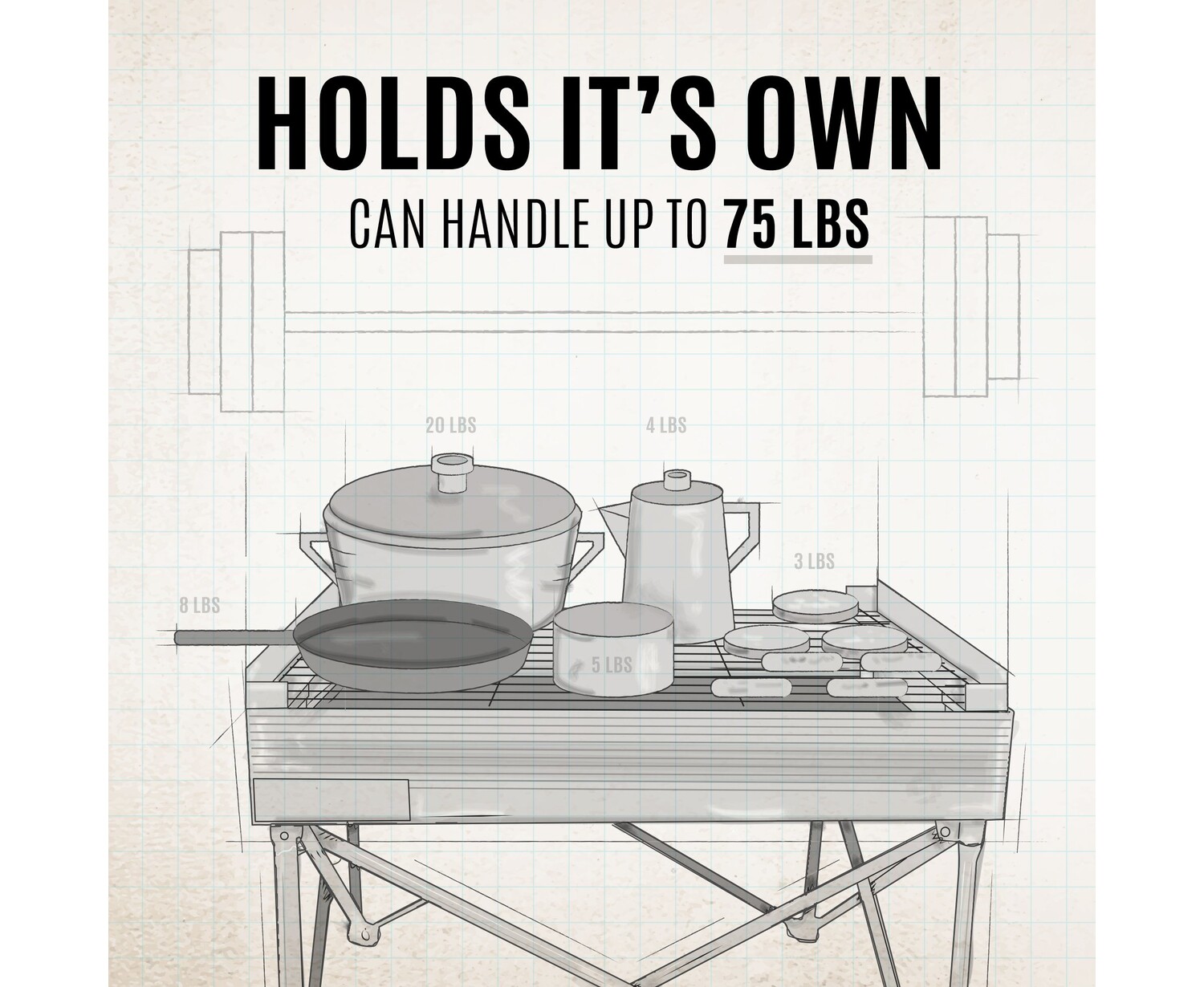 Heavy-Duty 4mm, 304 Stainless Steel Rods Design Holds Up To 75lbs of meat, veggies, pots, and pans.