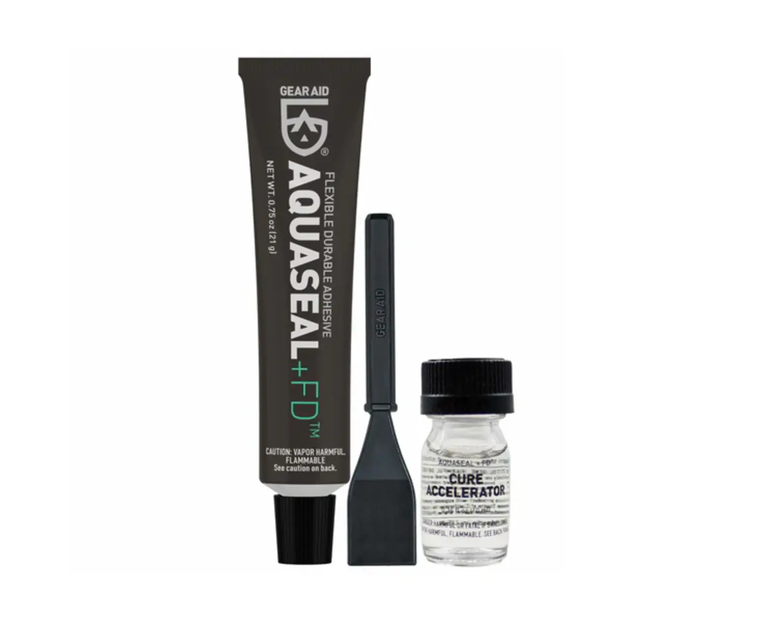 CloseThe Gear Aid Aquaseal+FD Repair Adhesive + Cure Accelerator has all you need to repair gaskets and fabric, sprayskirts and all types of watersports gear. Repairs are waterproof, flexible, strong and highly abrasion resistant.