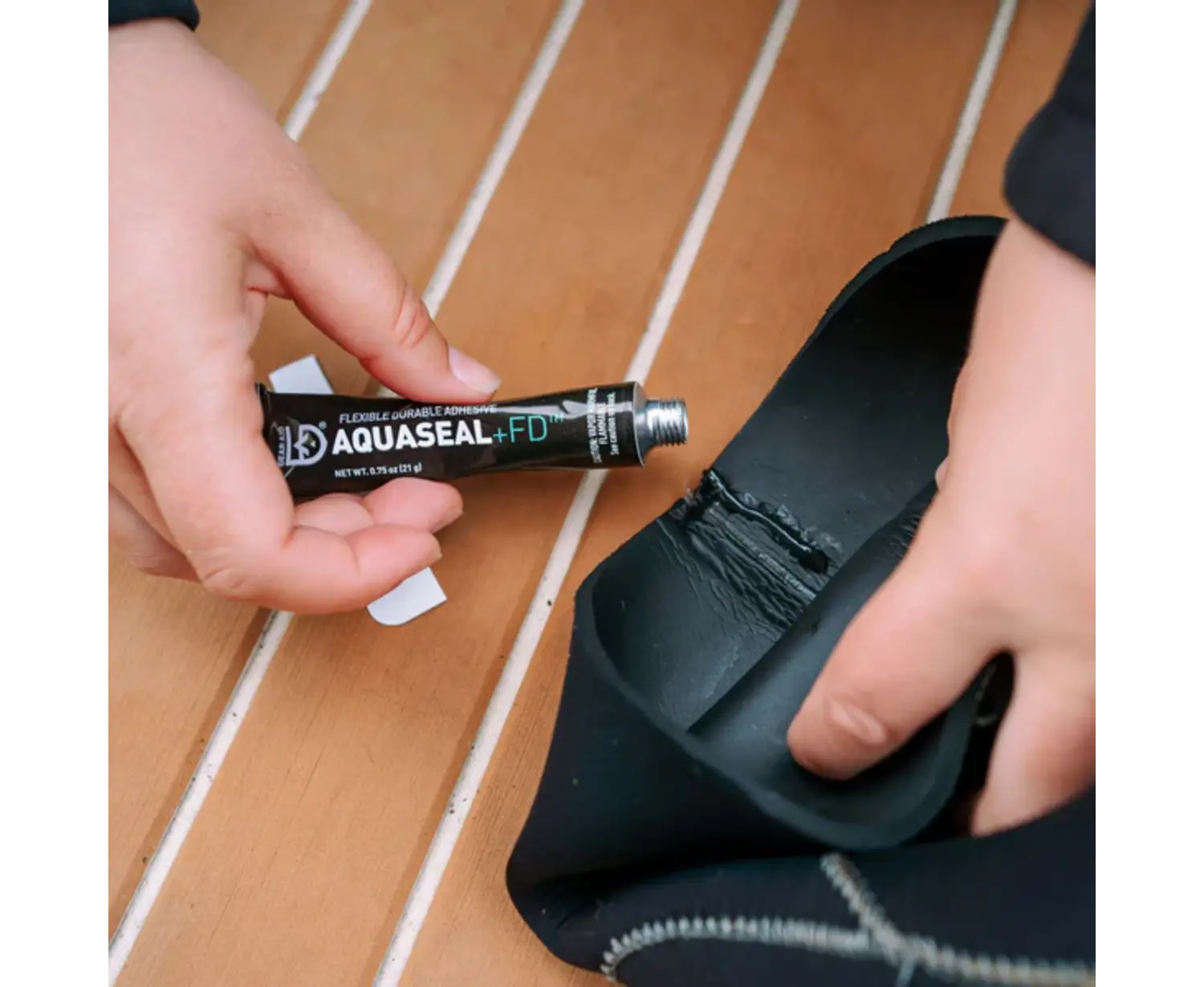Need a fast fix for torn gear? Use Aquaseal FD repair adhesive and Cure Accelerator (formerly Cotol-240) to quickly tackle rips and tears in waders, wetsuits and muckboots. Aquaseal FD is a clear and waterproof urethane adhesive that comes in a 0.75 oz tube. It offers excellent abrasion resistance and can withstand constant pulling and movement. Using Aquaseal FD with the Cure Accelerator together and be back in the water within two hours. This formula also improves gear repairs by cleaning the surface and shortening tack time to 15 minutes. For a speedy solution to gear failures, use Aquaseal FD and Cure Accelerator.