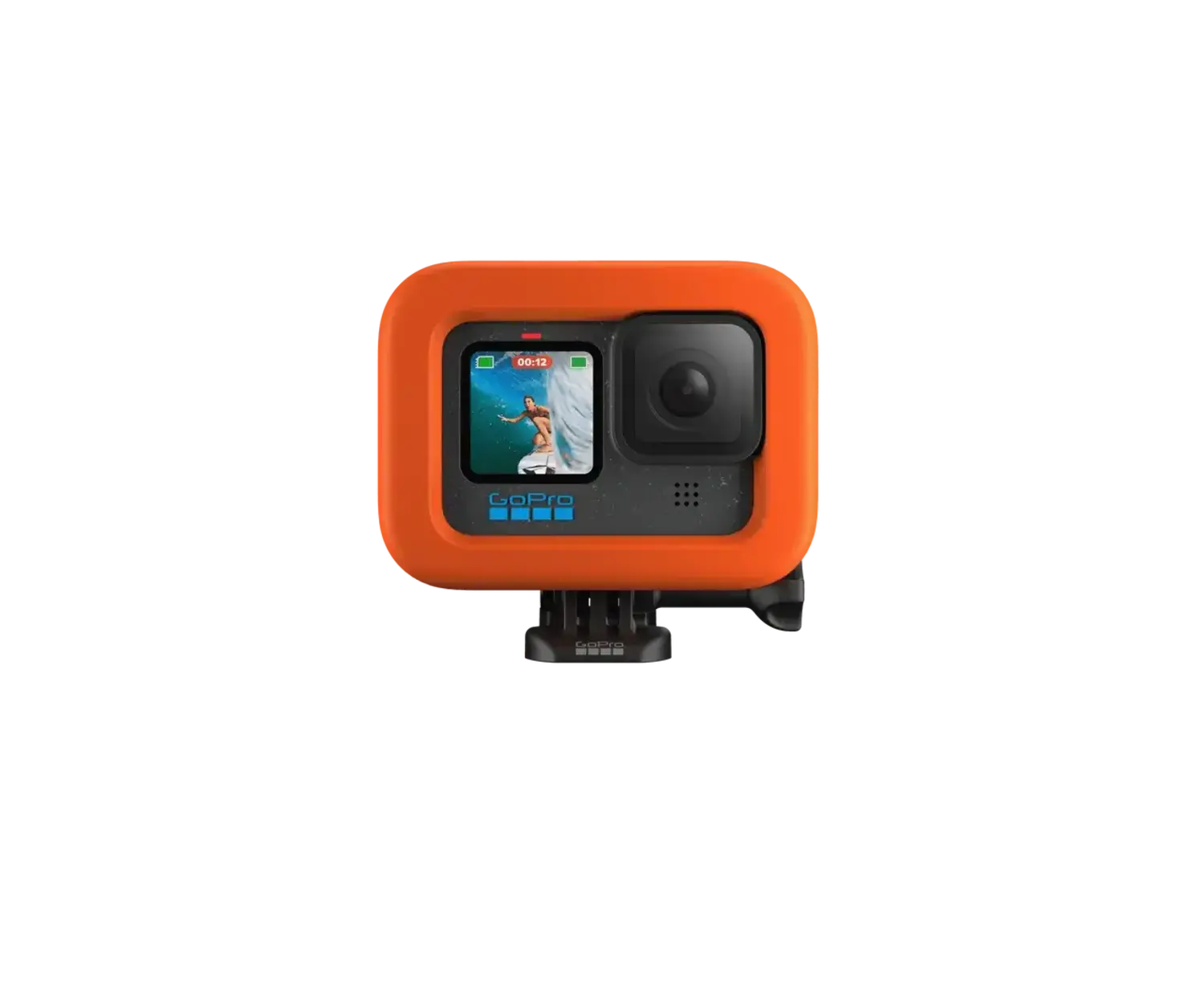 This easy-to-spot accessory keeps your HERO camera afloat1 and adds protective padding. The wraparound design allows access to your camera buttons, front LCD screen, back touch screen and folding fingers for easy mounting. Great for snorkeling, surfing, wakeboarding and more, Floaty also includes a tether point for added security.