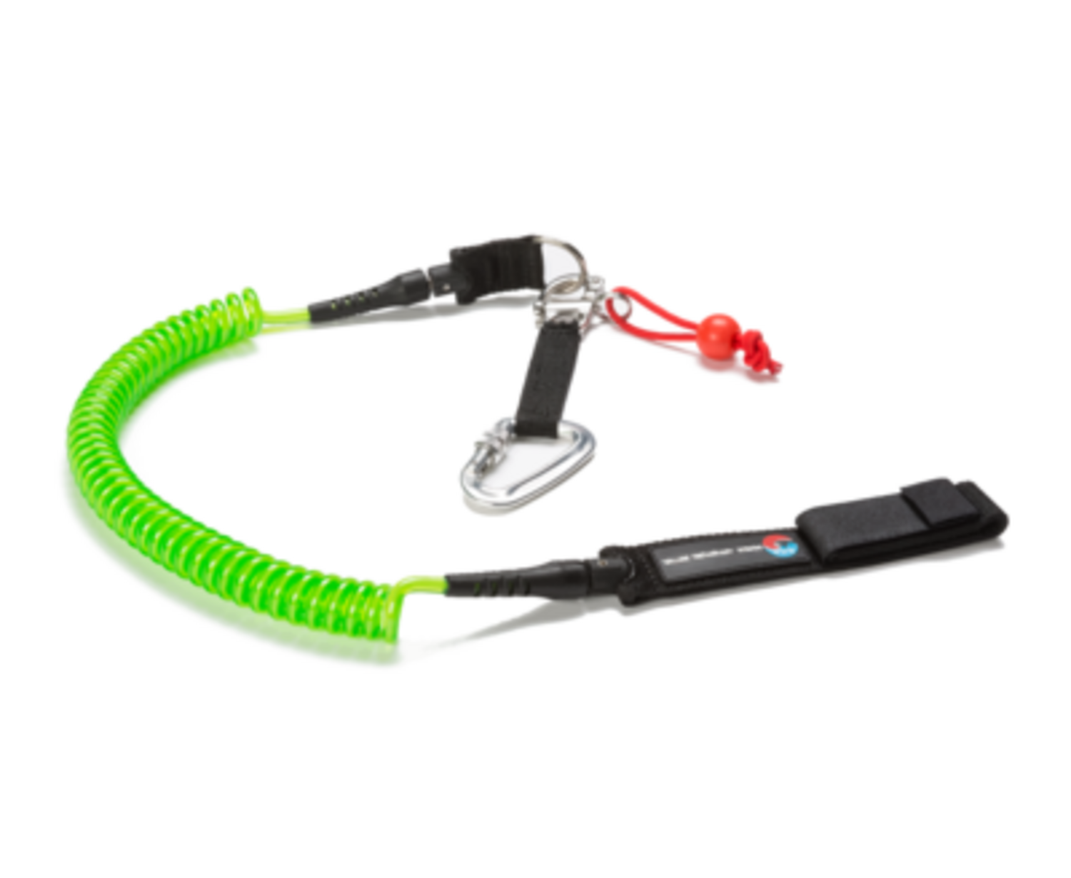 River, Moving Water AND Flat Water Available in 7’ and 9’ No need to buy two leashes! Perfect for paddlers looking for versatility, this unique design features 2 different attachment options. Option 1: a releasable leash with the sailing shackle and locking carabiner which allows you to attach to your PFD. With a simple pull of the shackle ball you can release the leash from your PFD and swim safely away. Or Option 2: Convert the leash to an ankle leash by attaching the ankle cuff to the same sailing shackle. Boom, you have a great leash to use on flat water and surf environments. The coiled body is great for no-drag, and keeps the leash out of your way as you walk the line of your board or throw a brace. It also keeps you safe from catching passing branches or rocks. 2 lengths gives you options. The shorter 7’ leash is better for river specific use and river surfing as it keeps you closer to your board if you fall in. The 9’ leash is good for more down river expedition paddlers using bigger boards or all-around crossover paddlers who want to also convert it for alternate uses. Pick and choose what you want with this innovative leash.