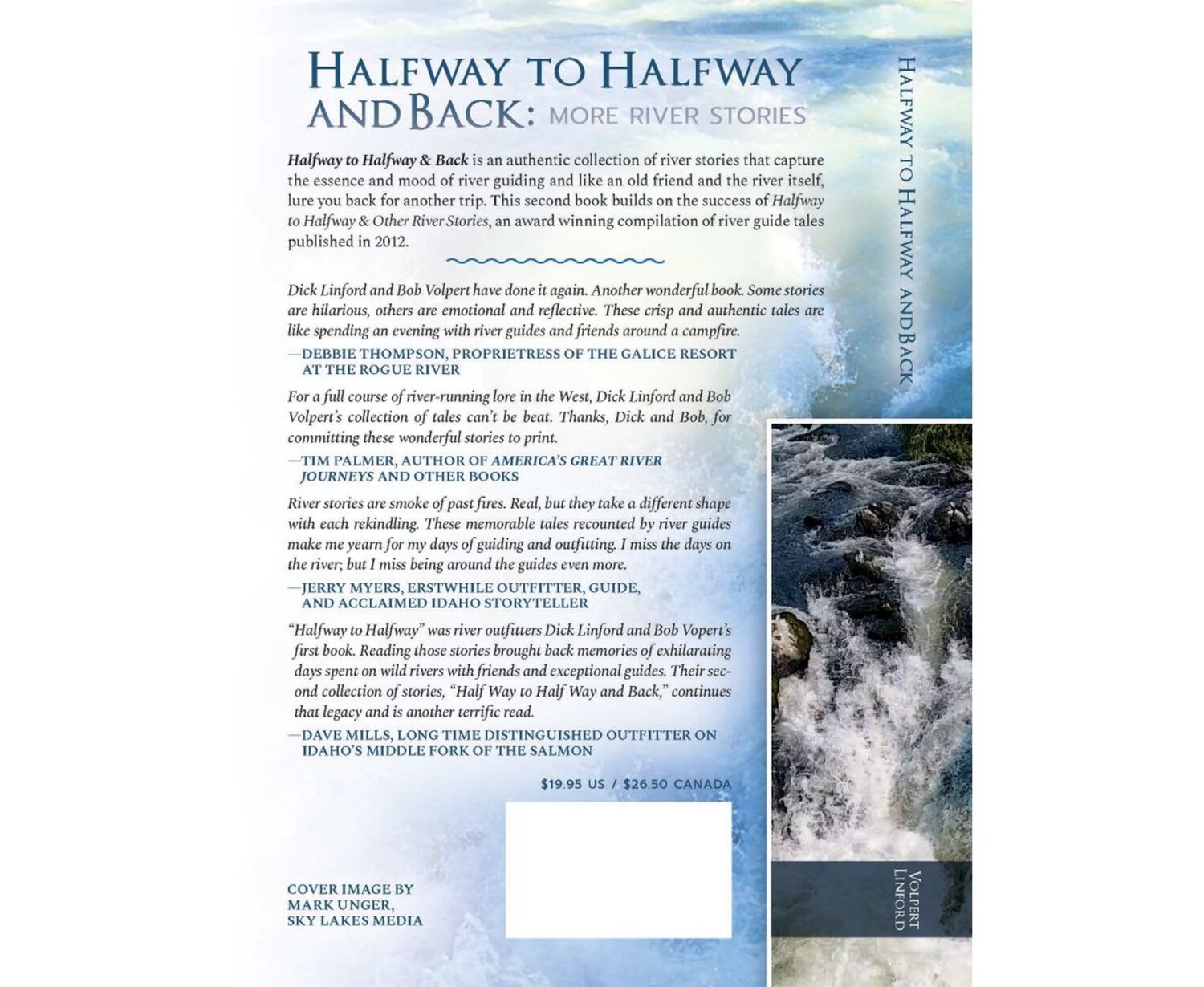 CloseHalfway to Halfway and Back is an anthology of stories compiling the humorous, sad and often ridiculous tales that capture the essence of river guiding. The authenticity of voices and experiences in this second collection from Dick Linford and Bob Volpert