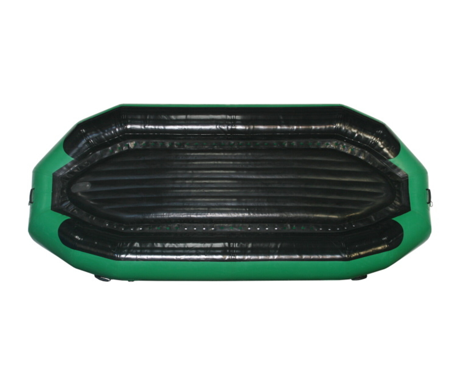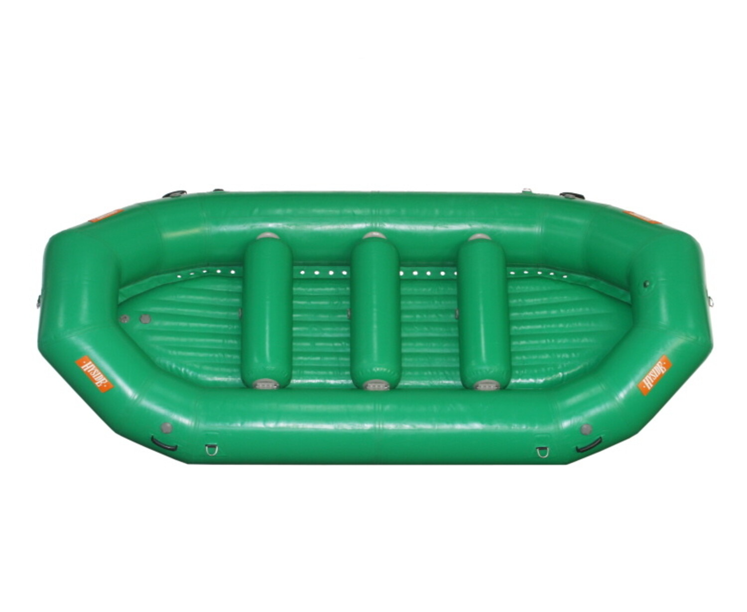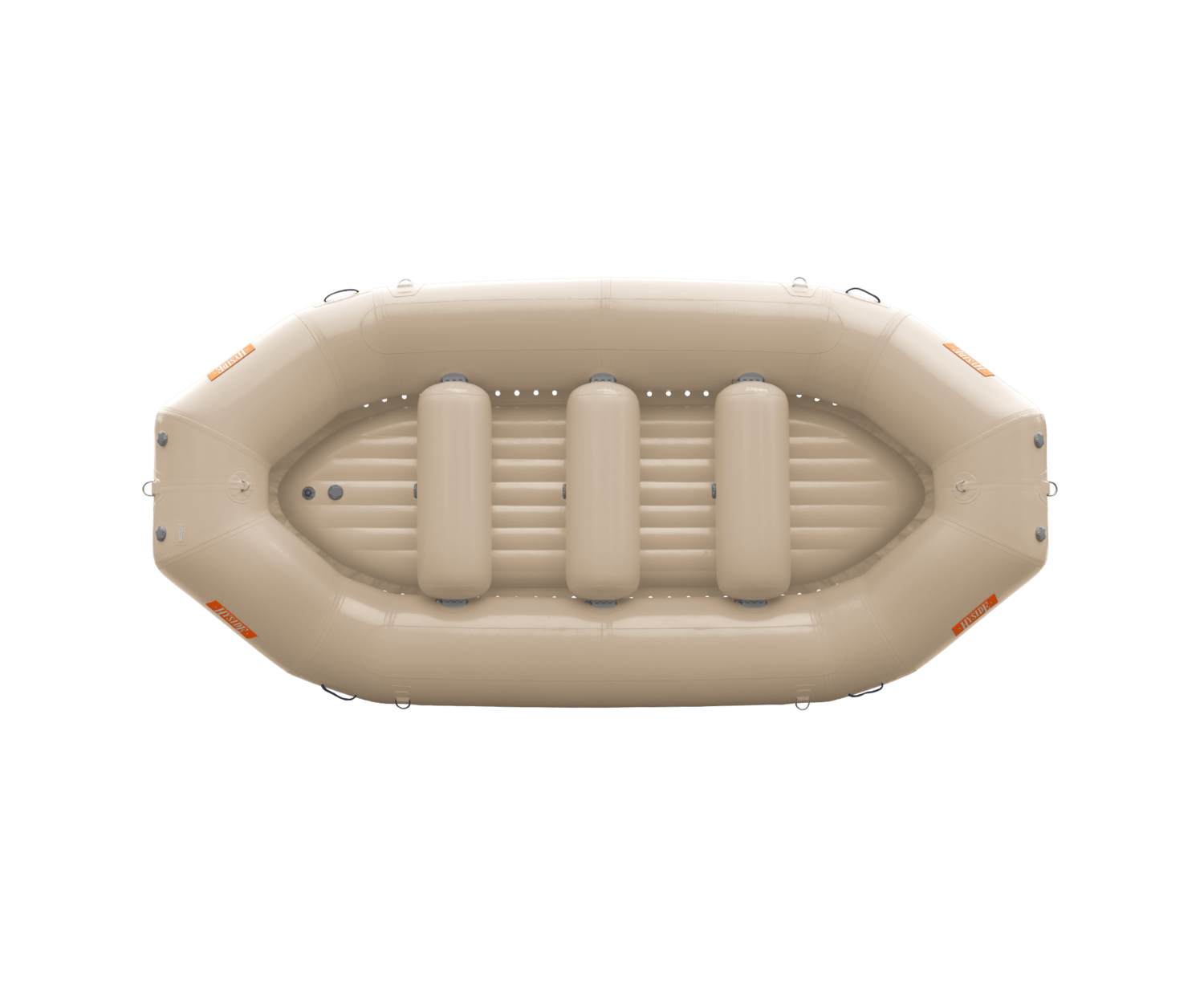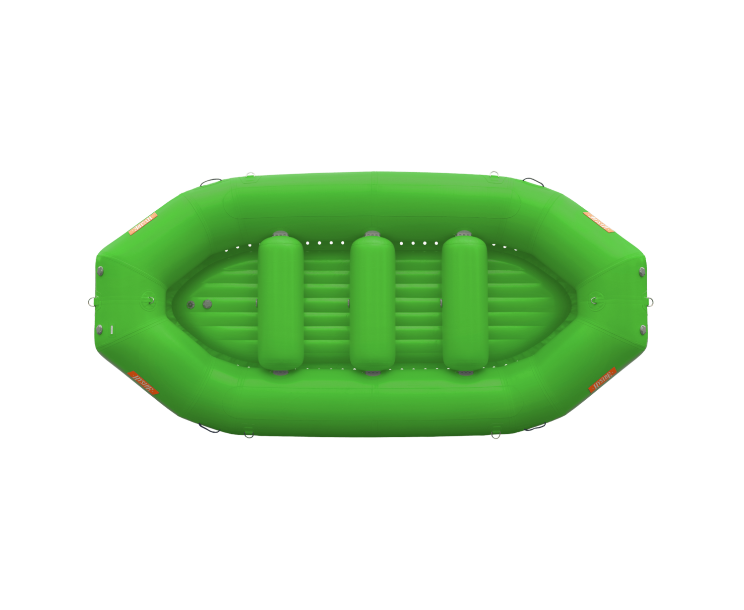 With four main chambers, triple bonded seams and urethane bottom chafers, you can’t beat this 6-8 passenger workhorse for this price. A favorite for the outfitters and the standard for anglers at all flows on the Arkansas River, this boat is the perfect size for a 3 man fishing rig, with plenty of cargo space, yet narrow enough to sneak into your favorite spots and low water channels. Depending on your frame width, we’d recommend 9-9.5” oar set ups while rowing a 13er.