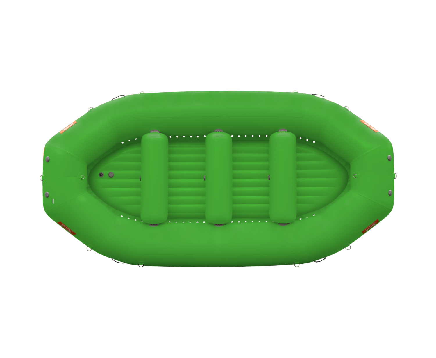 | Looking for a 14 foot gear boat? Look no further! We added 2” to the tubes, an increase in the straight section and beam along with 5 additional d-rings to build the best 14er gear boat on the market. This boat does not stop there as it doubles as a fantastic, more stable, big water paddle boat as it comes included with 3 easily removable thwarts. Again, in general we recommend rowing with 9.5’ oars for a 14er. All boats with XT specs will have increased tube size and additional d-rings compared to base models. |