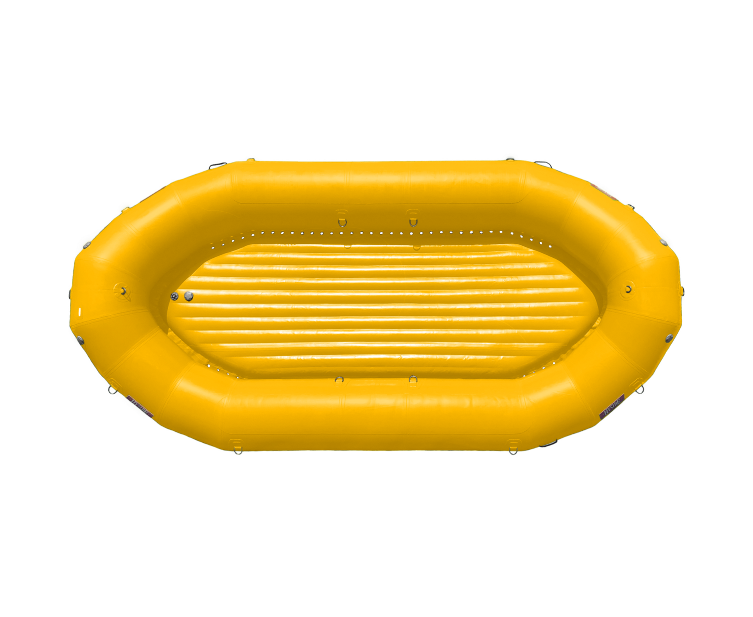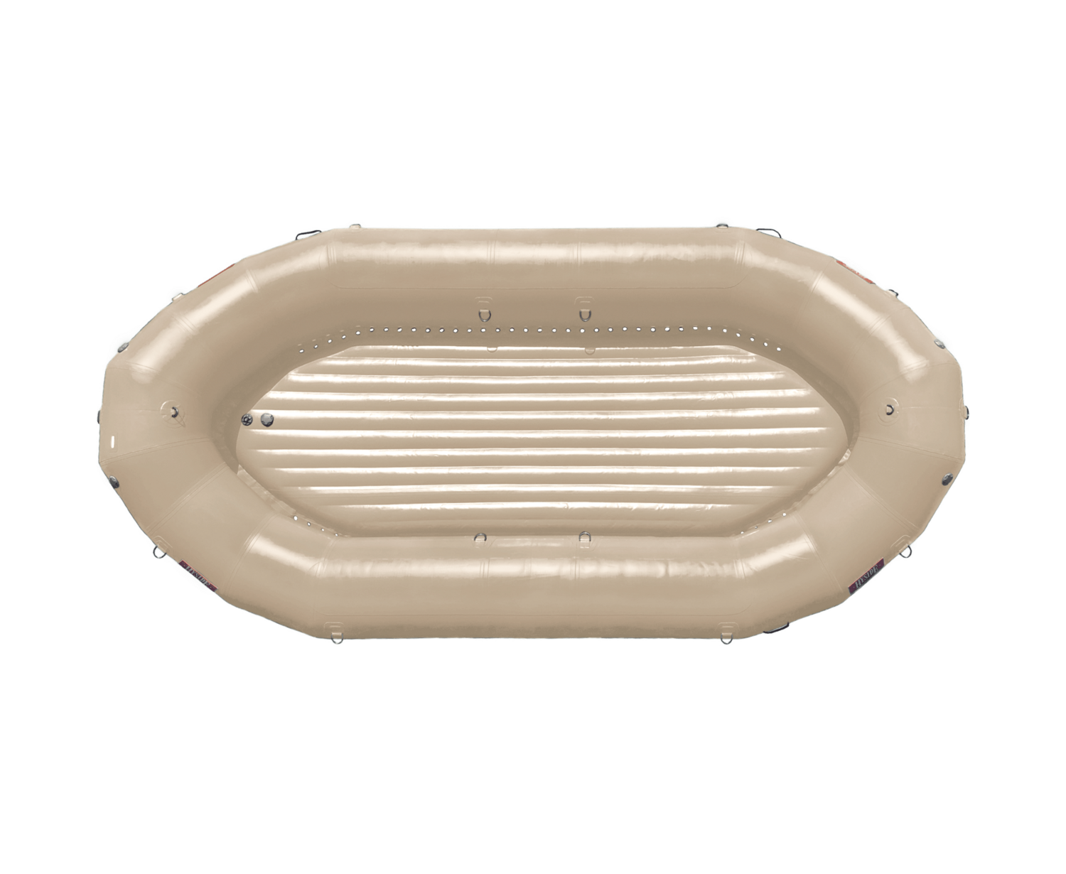 Whether you see this on the Kicking Horse in Canada as a paddle assist or a fully rigged gear boat on the Grand Canyon, you are talking stability and capacity here. The perfect multi-day boat, with oversized tubes and a killer tube design, it rows like a dream and handles the extreme. This boat has 16 d-rings (8 more d-rings than our PRO 16) and can accommodate whatever your rigging style is. The big difference here is that it is 10” wider than our PRO 16. The PRO 16XT does not come with thwarts by request as this is mainly used as the “Pig-Rig” gear boat. With 6 handles, there are plenty of grab points to get this back on the trailer. Generally, depending on your frame set up, we’d recommended 10-10.5” oars for 16ers. Looking for a 16er that comes with thwarts? Check out our PRO 16.