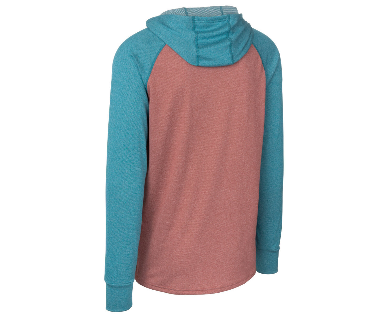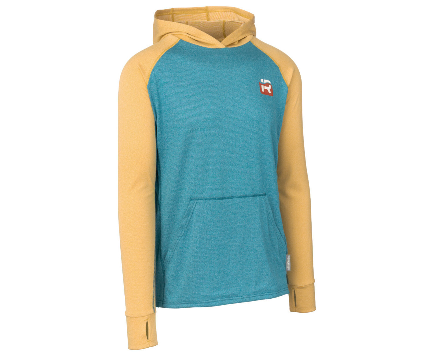 The Highwater Hoodie is an advanced lightweight technical base layer made from Polartec® Power Wool™. This unique blend of wool and synthetic utilizes an advanced knit construction to place each fiber where it can work to its highest potential rather than the industry standard of blending wool and synthetic yarns together which often hinders the greater performance qualities of each fiber. Front kangaroo pocket to keep your hands warm. A helmet-compatible hood for warmth when needed. Thumbholes keep your sleeves down while layering up. Smooth face fabric for unrestricted layering. Equally suited under a dry suit, warming up at the takeout or tackling errands around town.