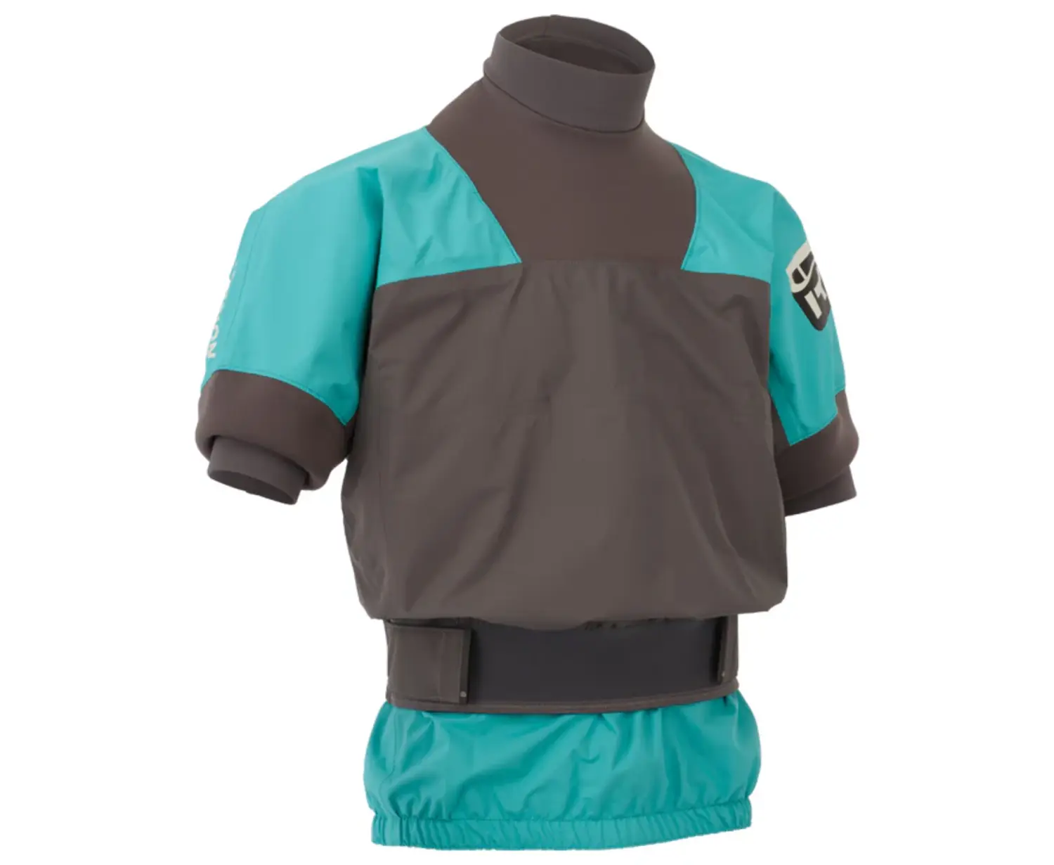 The Short Sleeve Rival Paddling Jacket is built like a dry top and features an inner tunnel for use with a spray skirt. Instead of latex gaskets, it uses neoprene neck and bicep bands to prevent water intrusion. Lightweight hydrophobic 2.5-layer polyester face fabric stays lighter, dries faster, breathes better, and prevents condensation. The articulated cut gives you room to move without being restricted or lost in excess fabric.