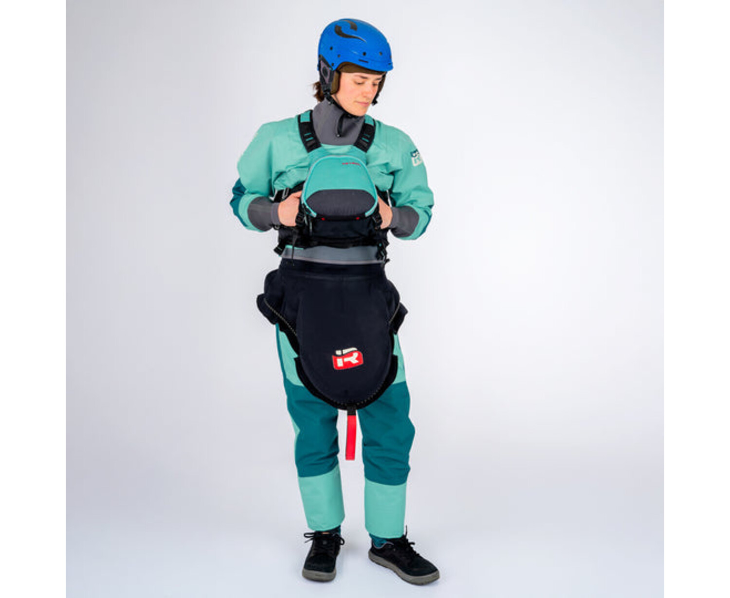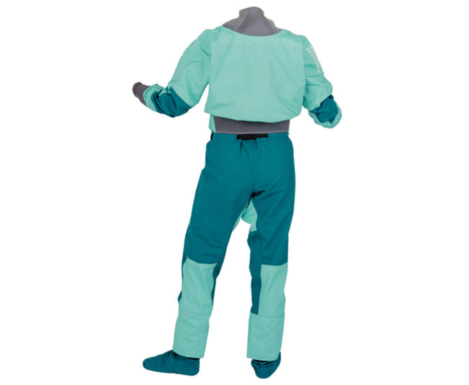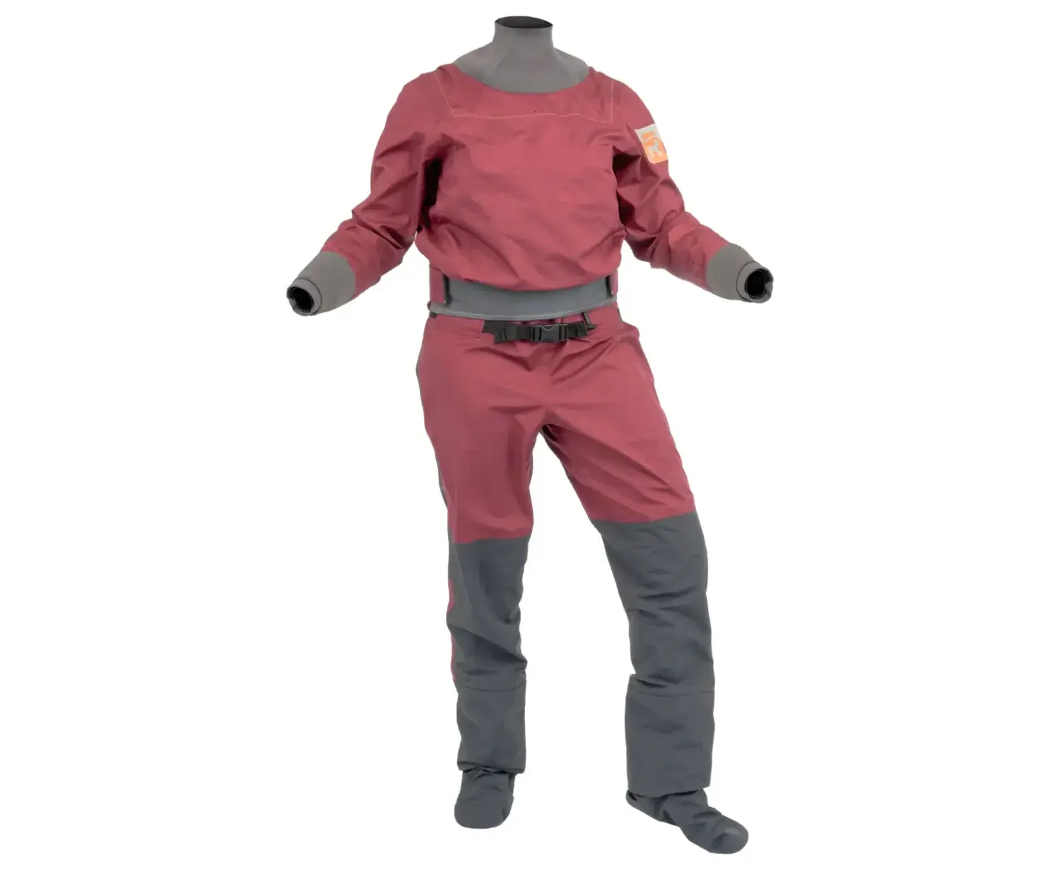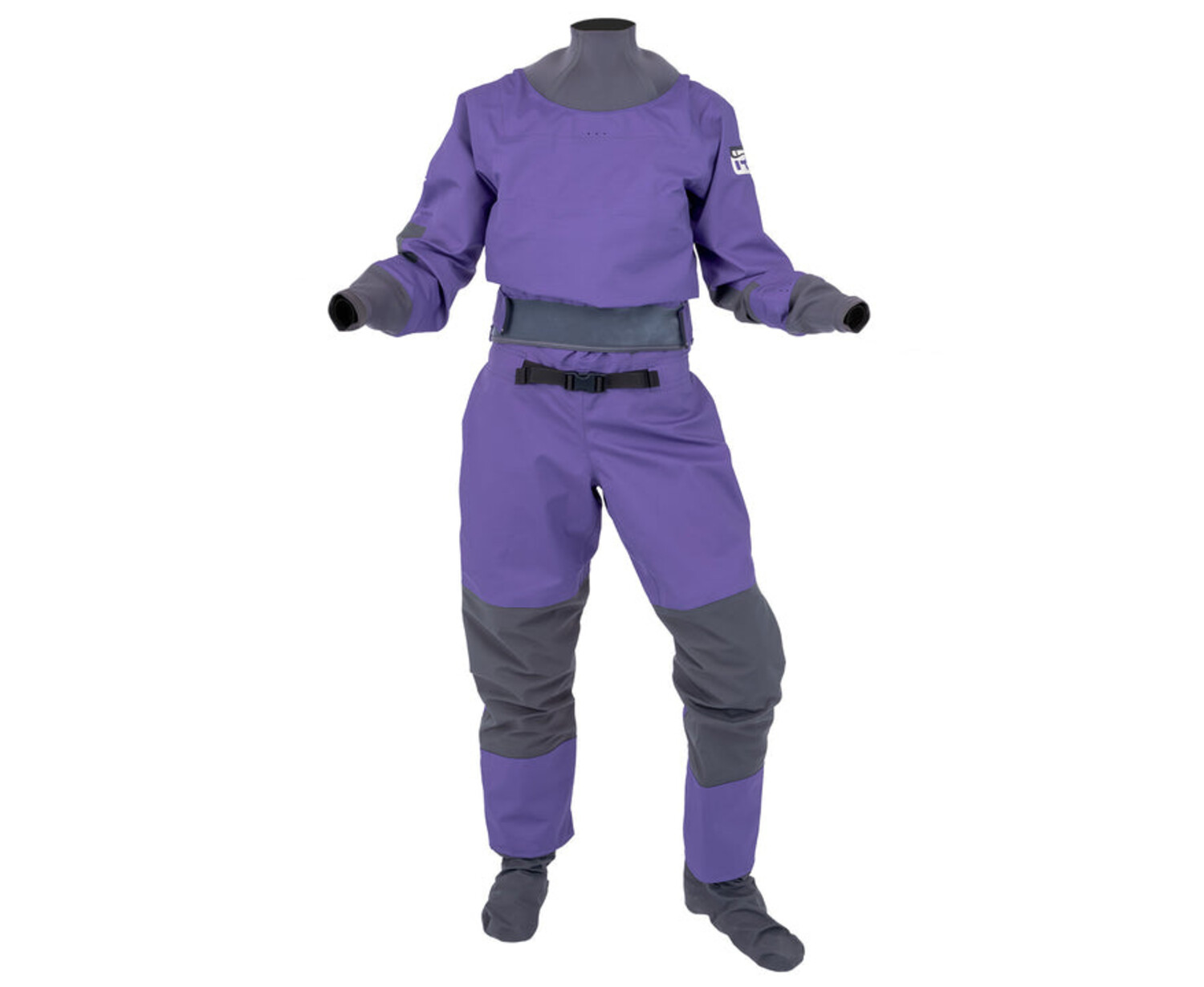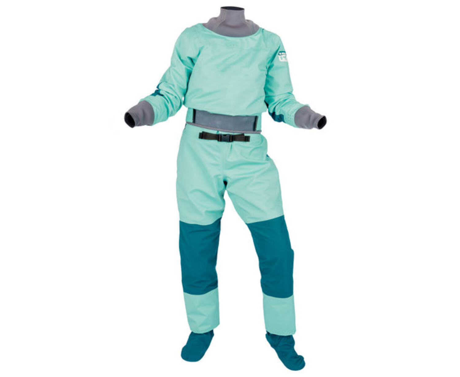 The Women's Aphrodite Dry Suit is a high-performance women's specific dry suit that features an articulated fit that doesn't compromise mobility or function. The strategically placed clamshell zipper is user friendly and works as both an entry and relief zipper, while sitting conveniently out of the way of seats, back bands, etc.