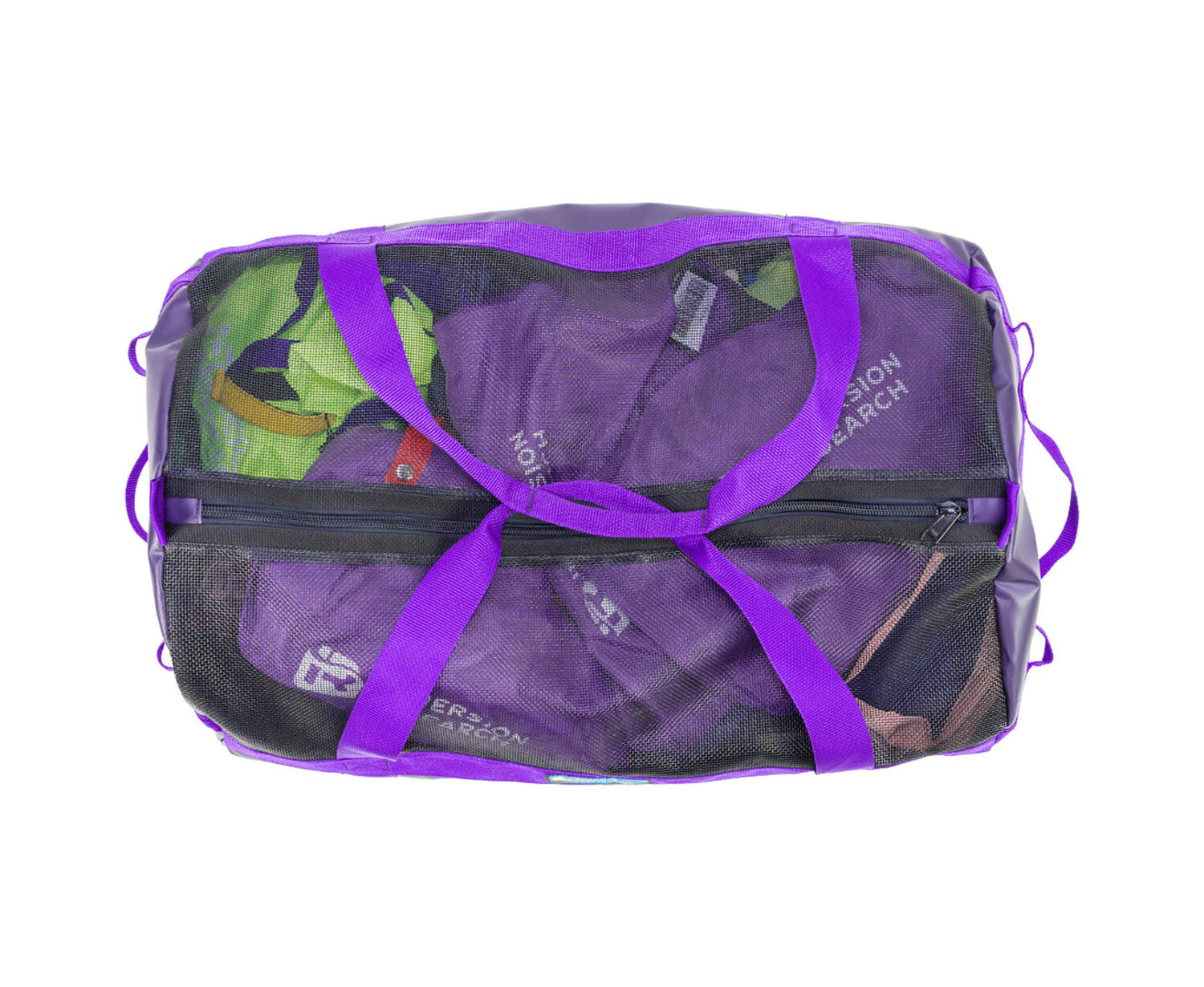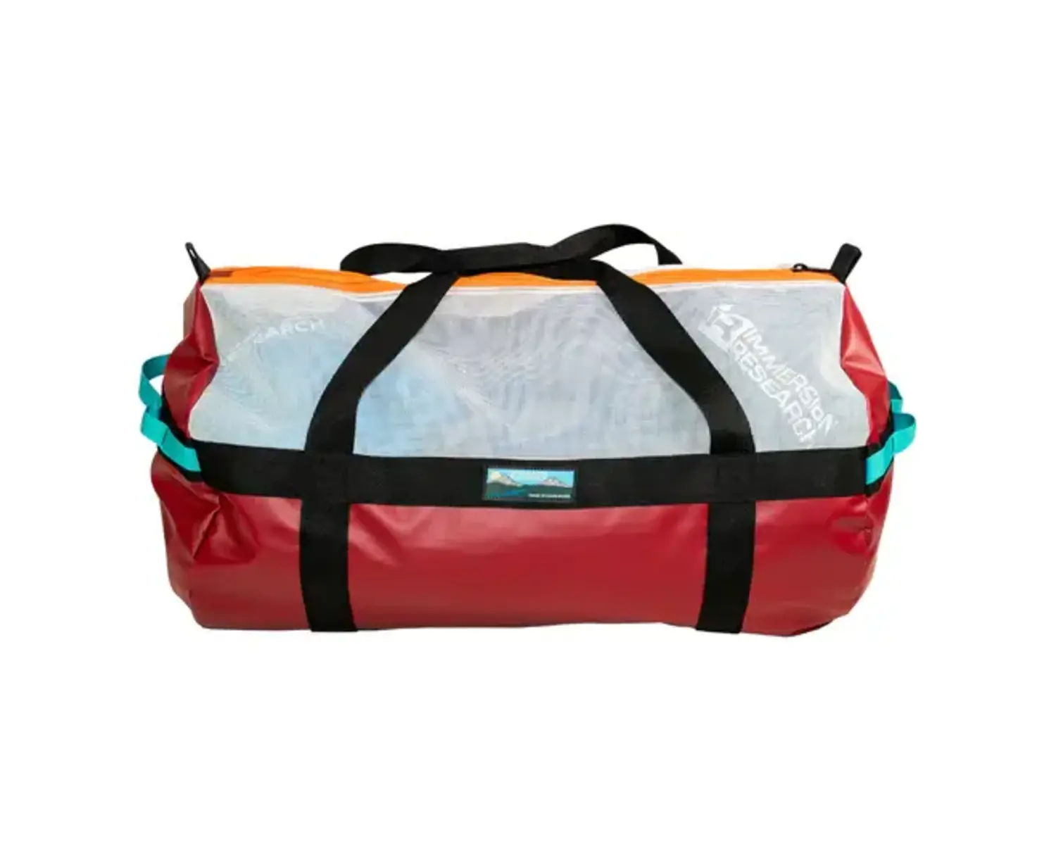 When designing this round of gear bags, we wanted to ensure that whatever we made would be just as tough as our last version. After rigorous testing, we finally found materials that fit the bill. The durable, abrasion resistant vinyl coated polyester base contains water, dirt and grime to the inside of the bag, while the mesh upper offers ventilation for wet gear. There's tie down points on each end to help secure the bag and the oversize webbing handles make it easy to carry, even when loaded down.