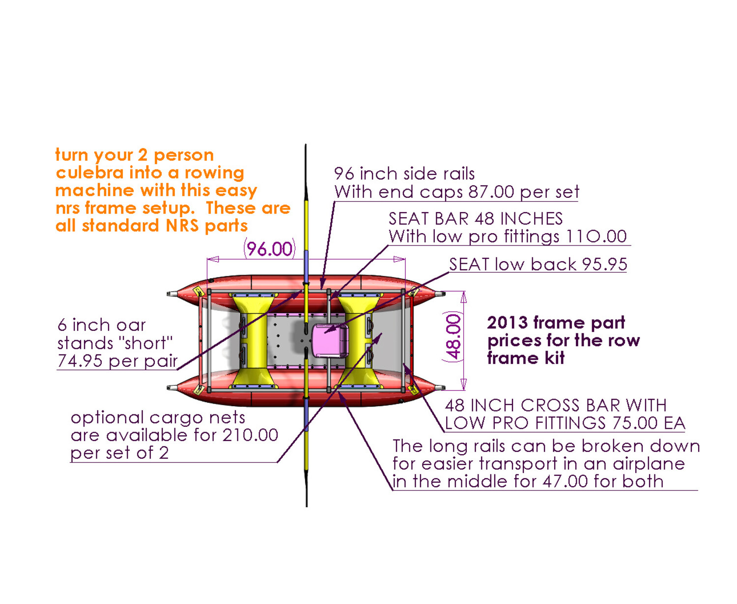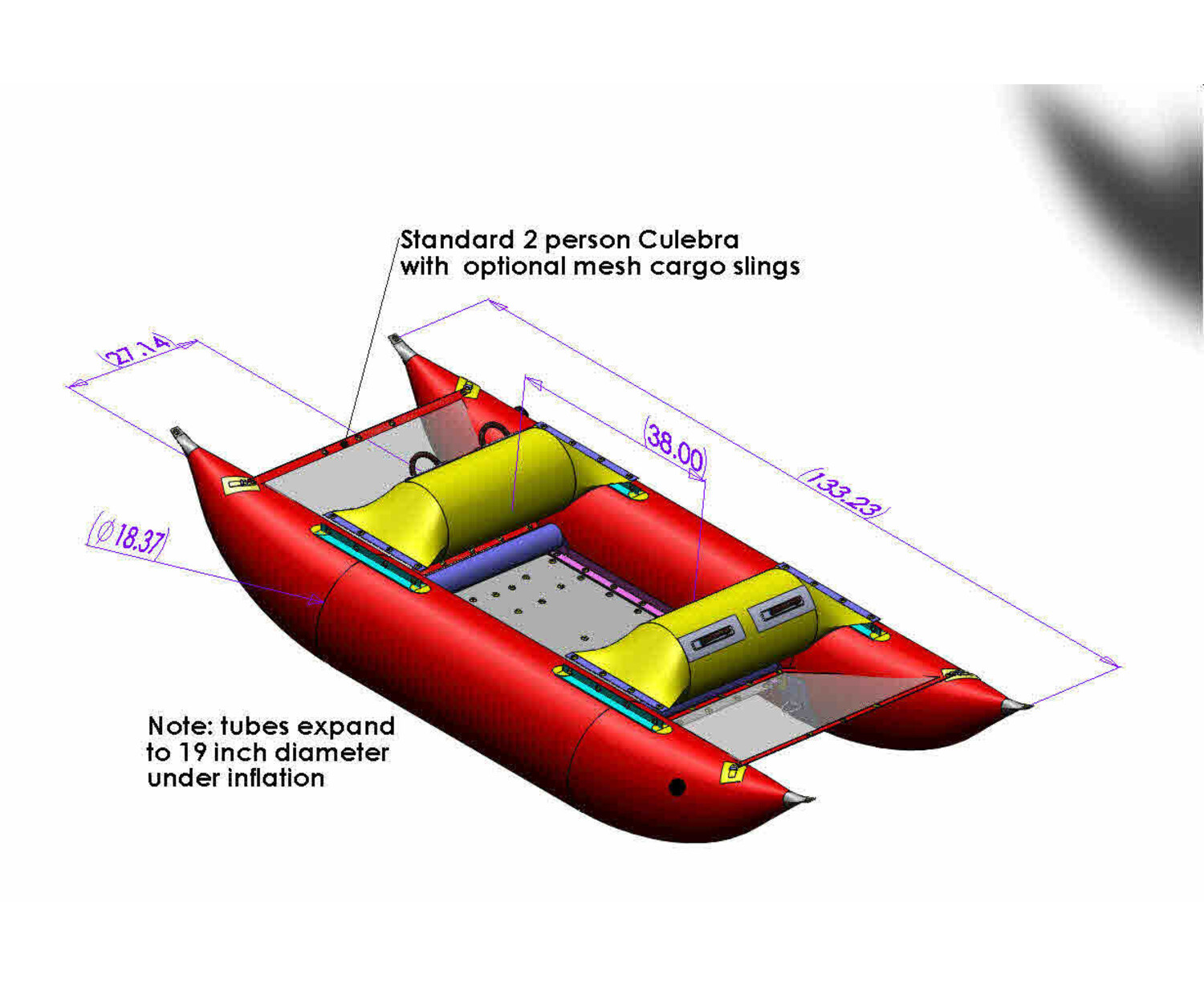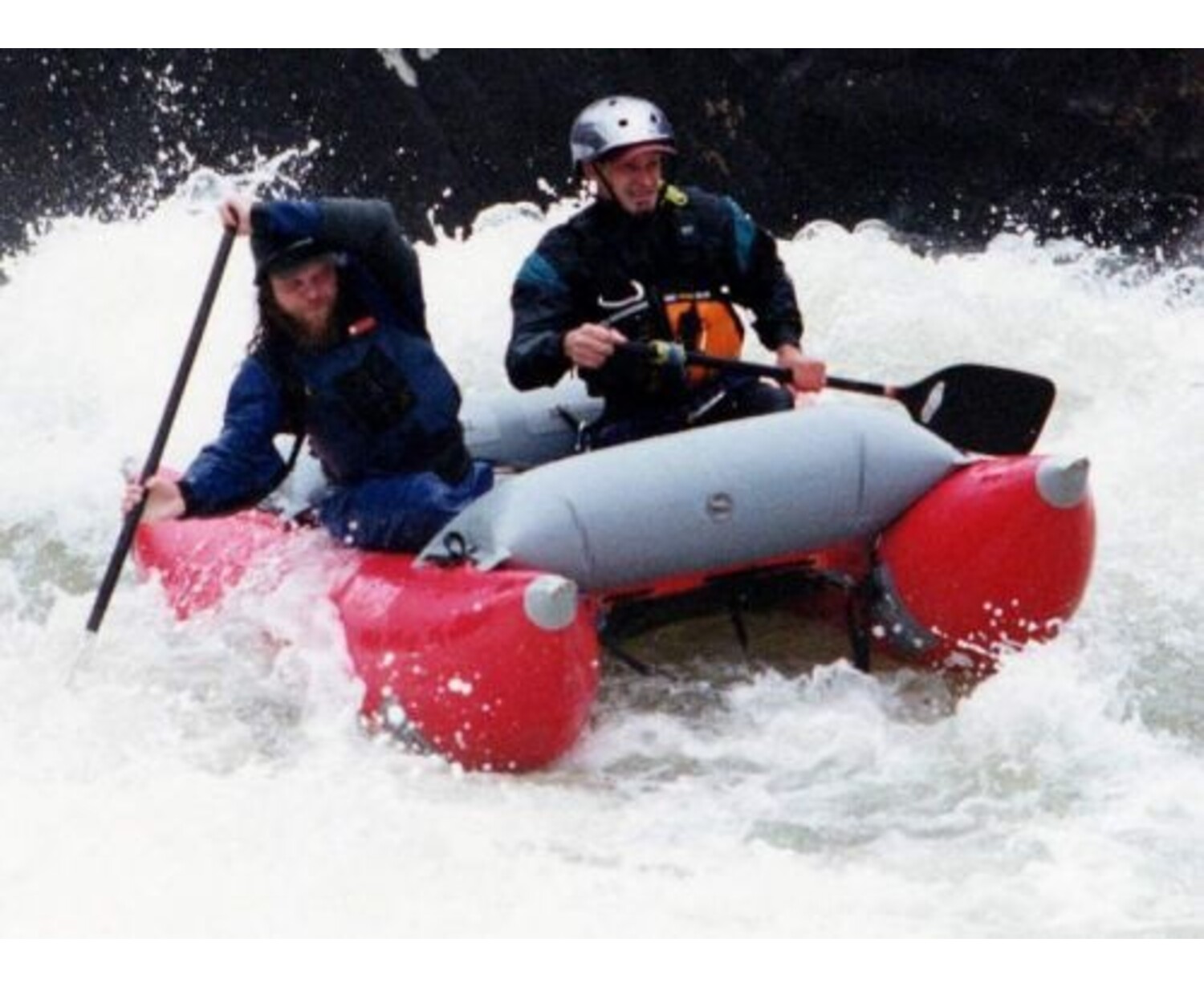 The Culebra is generally paddled R2 style. However even though we call these Frameless Catarafts, you can still put a very simple frame on them. The cross tubes on top keep the main tubes rigid in all water conditions. This boat can be unlaced for even easier transport, excellent for taking 2 people on a self-supported extreme whitewater trip anywhere in the world and still meet airline baggage regulations.