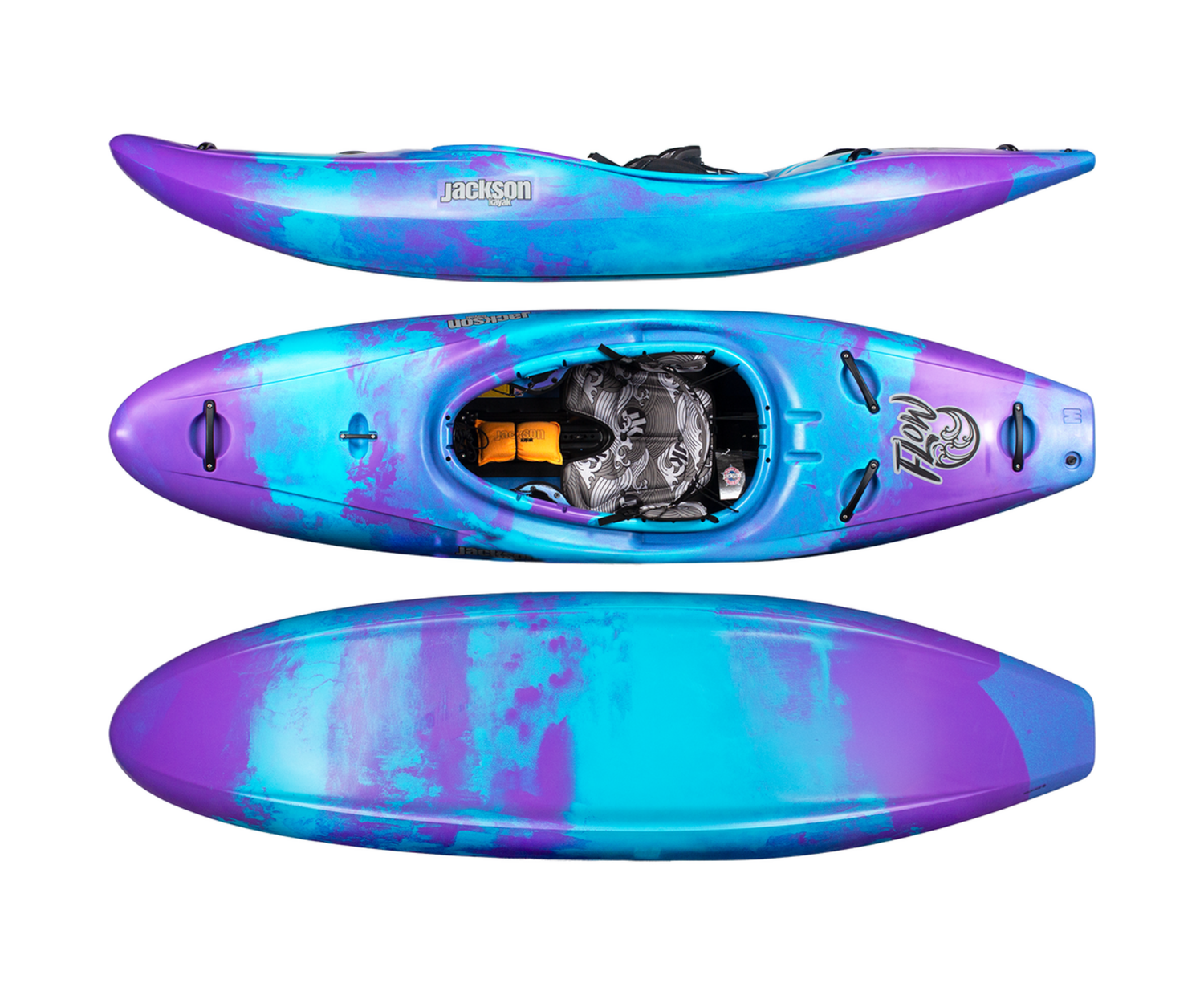 The Jackson Kayak Flow is a river running creek boat that is designed to take your paddling to the next level. The perfect combination of confidence where you need it, and sportiness when you want it. Whether you are just starting out or pushing the boundaries with Class V, this boat will take care of you with a shorter, lighter, sporty ride! Want a modern creek boat rocker profile without all the weight and volume? The Flow is just what the doctor ordered. It has a full-on creek boat hull with a slimmed-down deck and shorter length for a lighter, nimble, easy-to-turn, easy-to-boof, easy-to-carry experience with maximum maneuverability. Small and large sizes are shipping now, contact your local dealer for more information!